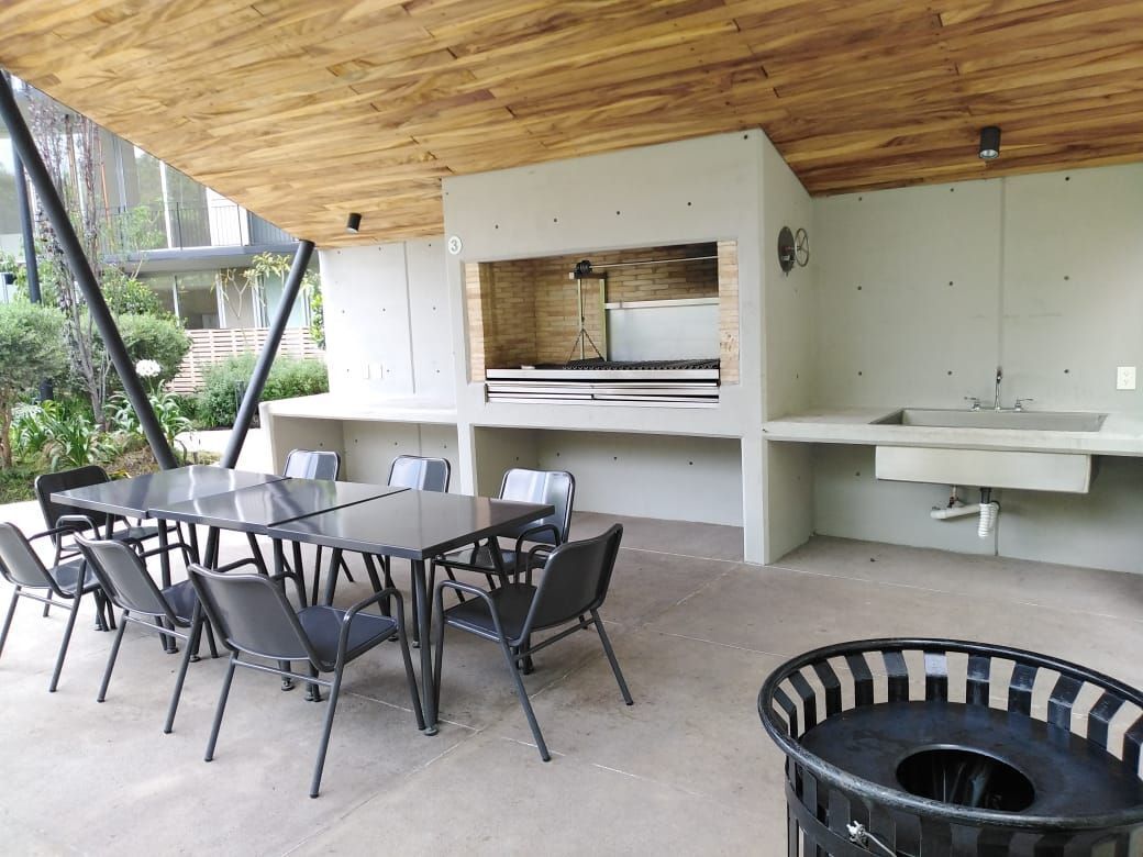 Constan de sala-comedor, amplia cocina integral, 2 recámaras, vestidor, 2 y medio baños con cancel de vidrio templado, terraza de 25.69 m2, cuenta con 2 cajones de estacionamiento que no se estorban, 1 bodega y área de lavado.