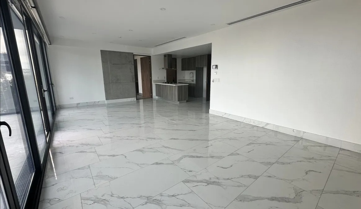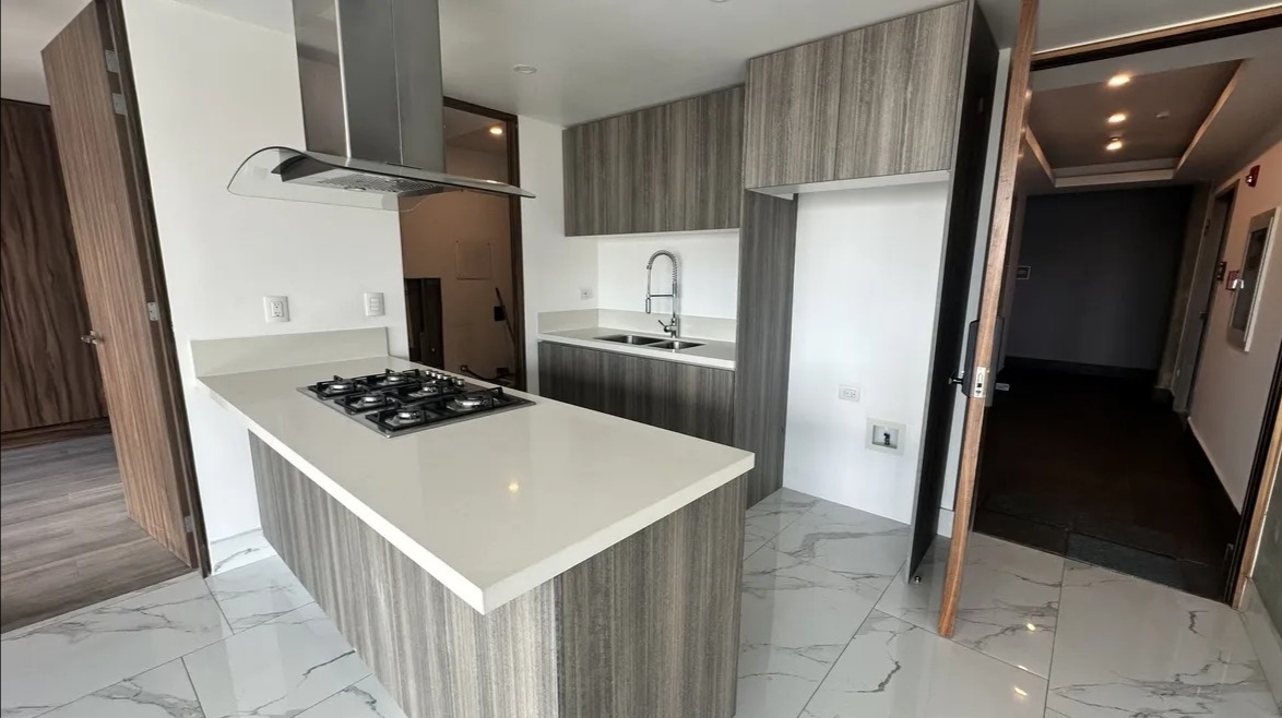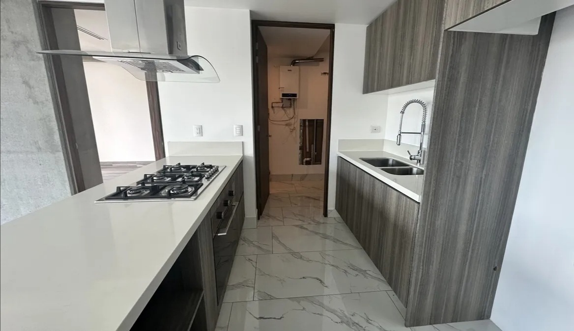 Incluye parrilla con 6 quemadores, campana, horno, microondas, refrigerador, lavadora y secadora.