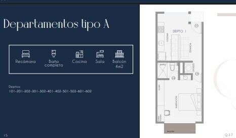 Este acogedor y funcional departamento cuenta con una amplia recámara, un baño completo y uso de suelo residencial, ideal tanto para vivir como para generar ingresos a través de renta a corto o largo plazo.
