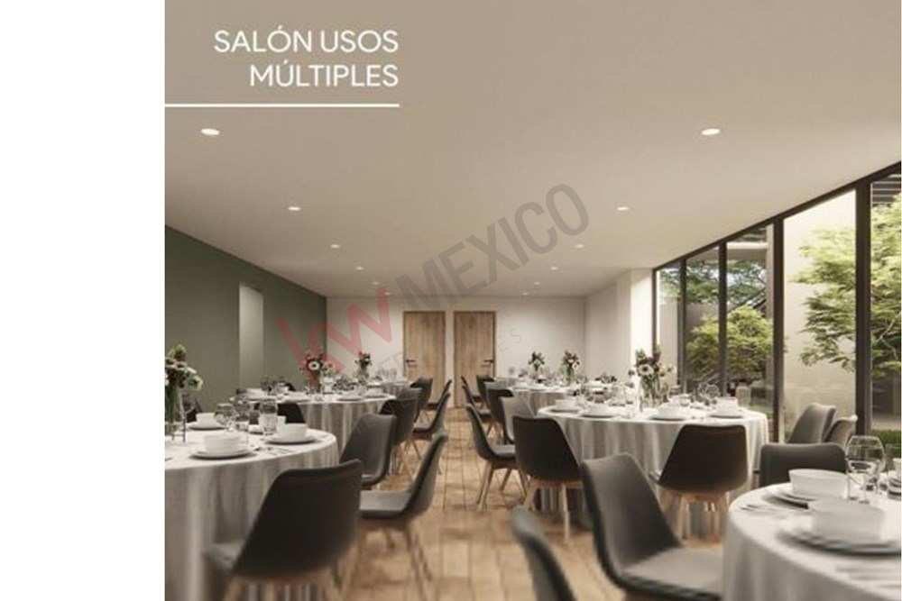 Con amenidades como; lobby, elevador, multi cancha, ludoteca, pista para caminar, Pet Zone, gimnasio, salón de usos múltiples, asadores, Co Working, Áreas verdes, Roof Garden Privado.
