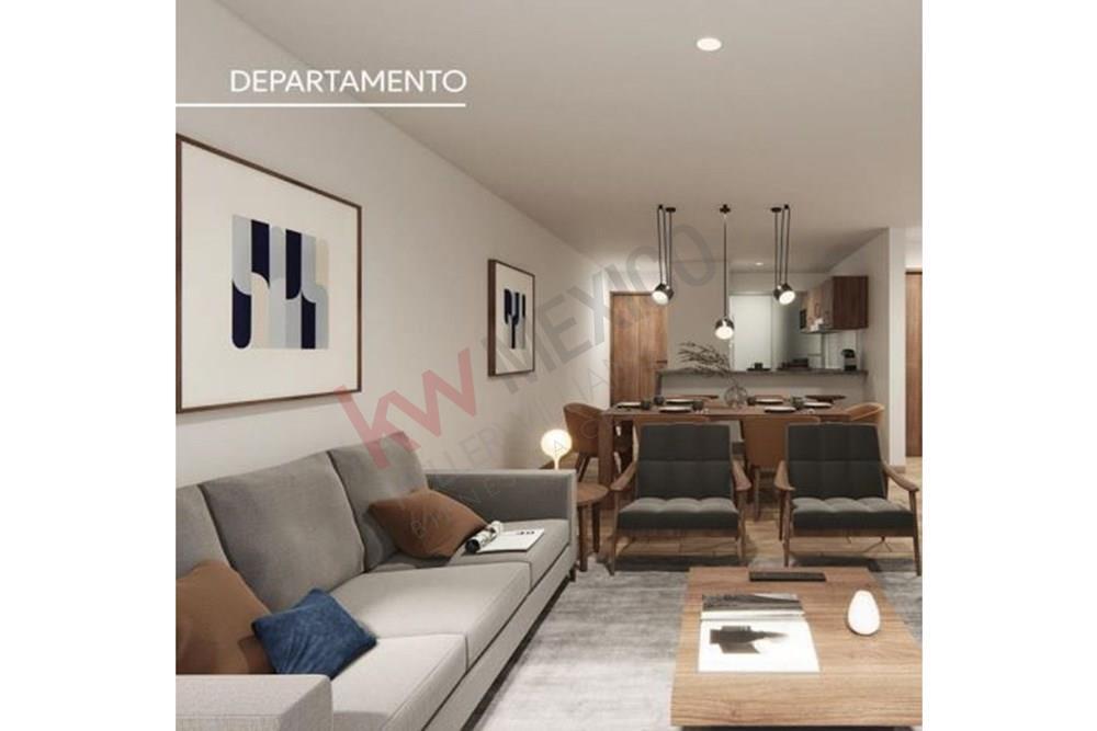 Departamentos de 2 o 3 recamaras, 2 o 2.5 baños, sala comedor, cocina, estacionamiento para un auto.