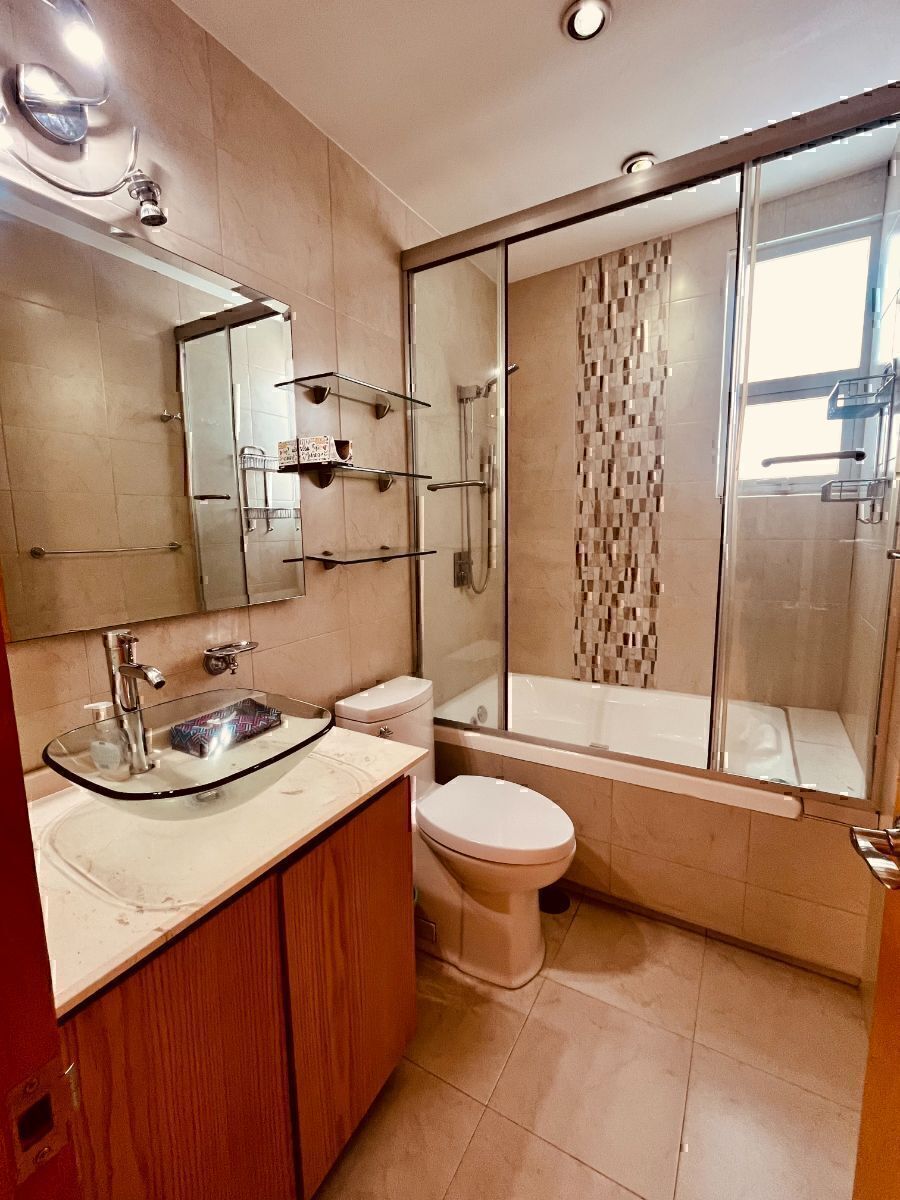 Const. 150 M2. Departamento distribuido en 2 niveles. El primer nivel, consta de hall de recepción, sala y comedor con salida a terraza, cocina equipada, bar, baño completo de visitas, recamara principal con excelente vestidor y baño completo. En el segundo nivel, hay una segunda recamara con closet, salida a terraza y baño completo, family room, cocineta, bar, y gran terraza con asador, cuarto de servicio con baño completo, área de lavandería. Cuenta con 2 estacionamientos y amplia bodega. Vigilancia 24 horas y CCTV. ¡No pierdas esta oportunidad de vivir en una de las zonas más exclusivas de la ciudad! Contáctanos para más información! Agenda tu cita ya!