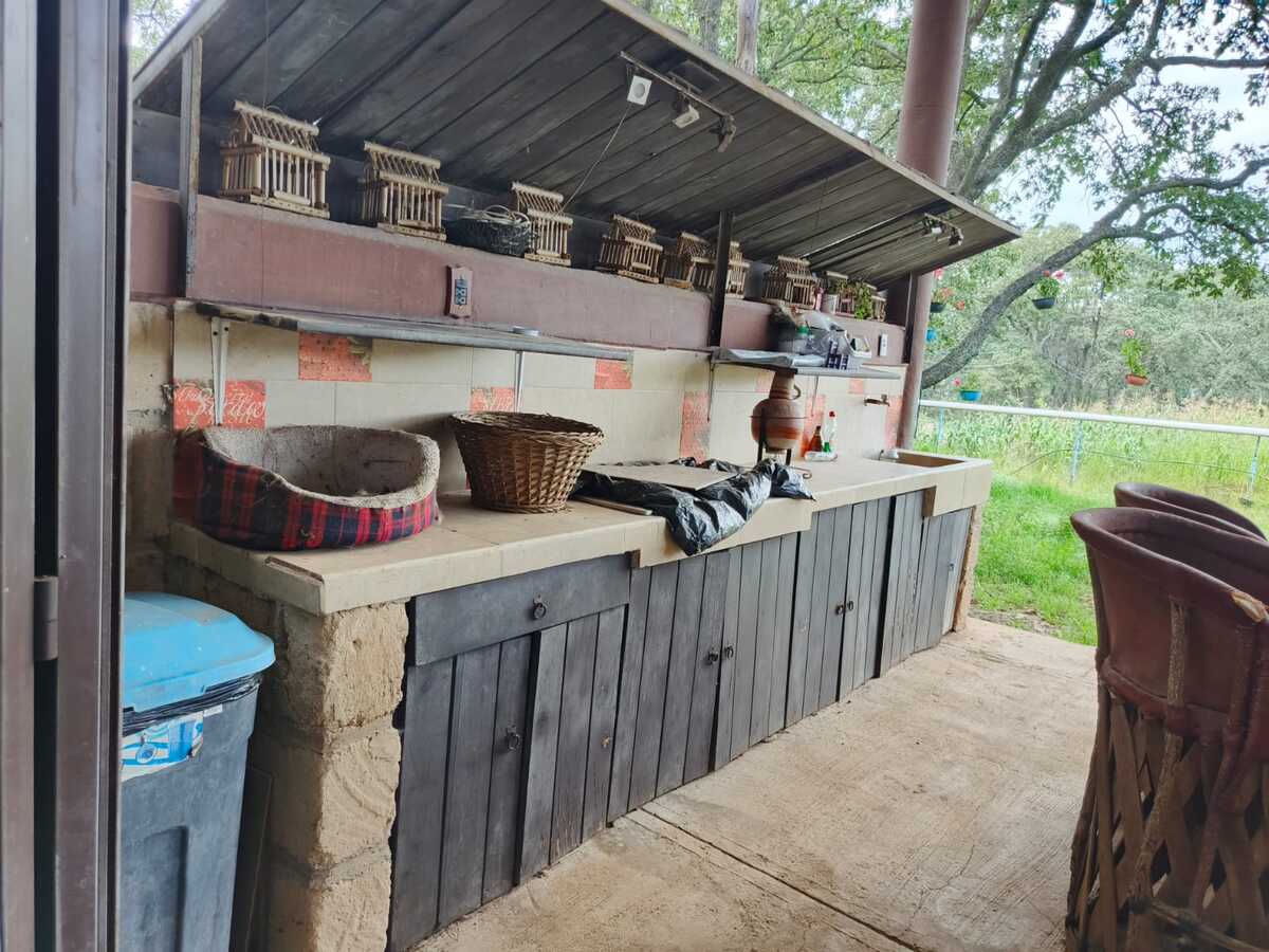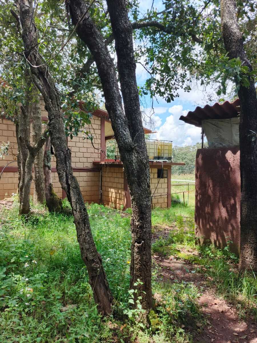 Con una pequeña laguna de agua, ideal para piscicultura, a un costado se encuentra una estructura de aparente de lámina y piso de piedra laja para área de descanso; cuenta con un pasillo cemento para la desinfección y baño de borregas, 3 establos, y espacio para crianza de cerdos o algún animal de interes.