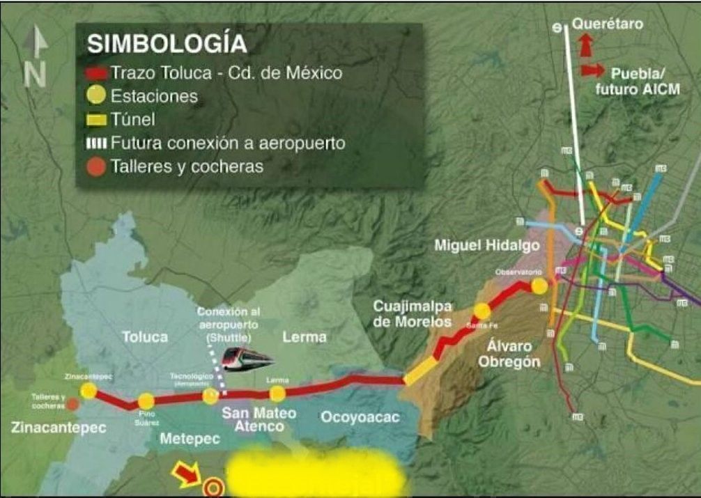 Esta área terá a construção do Trem Interurbano México – Toluca, um sistema de transporte moderno que conectará de forma segura e eficiente o Vale de Toluca e a área oeste da Cidade do México, para atender à problemática de conectividade e congestionamento de tráfego, que se apresenta entre essas duas áreas urbanas, e que representa um impulso de desenvolvimento pelo serviço que esse transporte prestará. Espera-se uma demanda estimada de 270.000 passageiros por dia (em ambas as direções). Contará apenas com 4 estações intermediárias (Terminal de Ônibus, Metepec/Aeroporto, Lerma, Santa Fe) e 2 Terminais (Observatório e Zinacantepec) com um tempo de viagem de apenas 39 minutos entre os terminais.