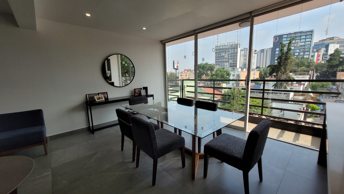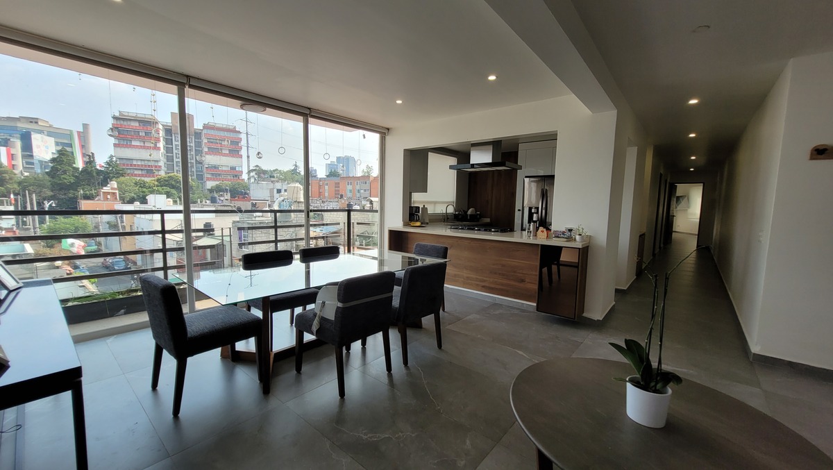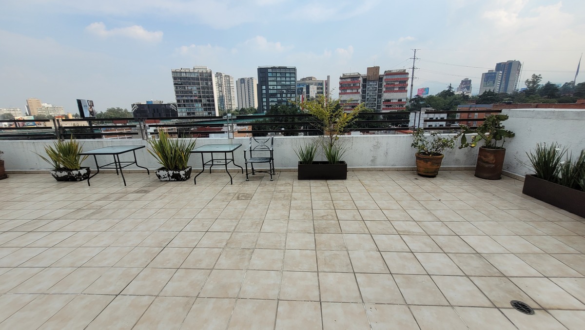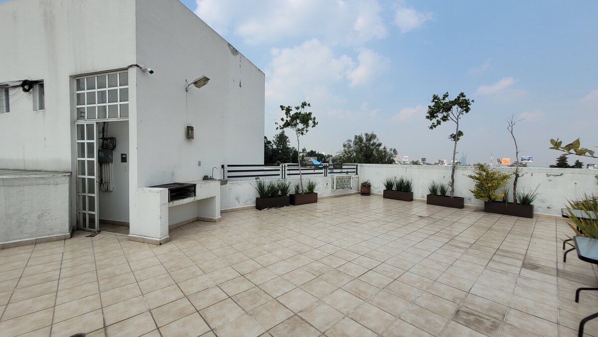El edificio es de 5 pisos, cuenta con seguridad privada 24/7, roof garden, elevador y se aceptan mascotas.