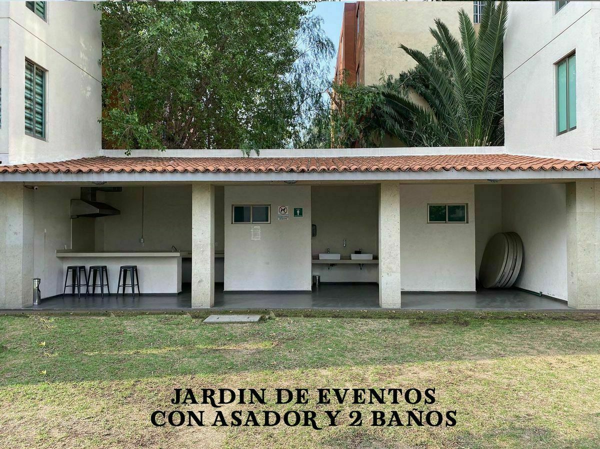Jardín para eventos con asador y 2 baños para los invitados.