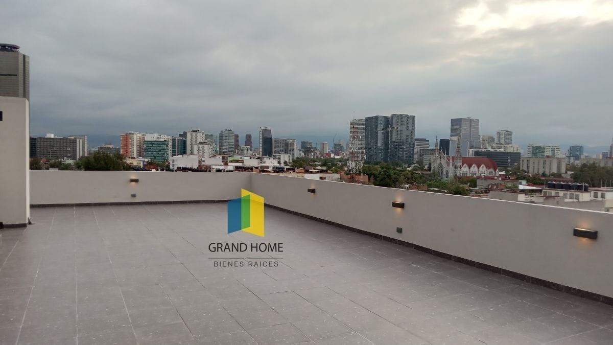 O Edifício conta com as seguintes Amenidades: Academia, Sala de Co-Working, Jardim de Telhado Comum.Venta Hermoso Departamento en Col. Anahuac de 62M2 habitables + 29M2 Roof Garden Privado + Balcón, cuenta con 2 recámaras, 2 baños completos, Cocina abierta con barra de granito, sala y comedor, Área de Lavado, 1 estacionamiento Individual, Vigilancia las 24 horas.