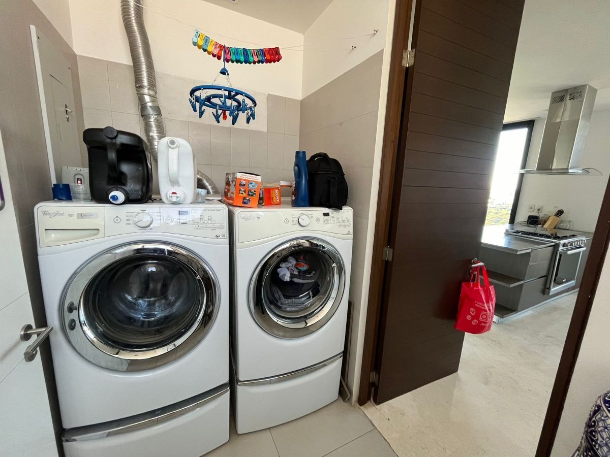 El cuarto de servicio, equipado con un baño completo, añade practicidad a la vida diaria, mientras que la iluminación LED proporciona un ambiente moderno y eficiente en todo el departamento.