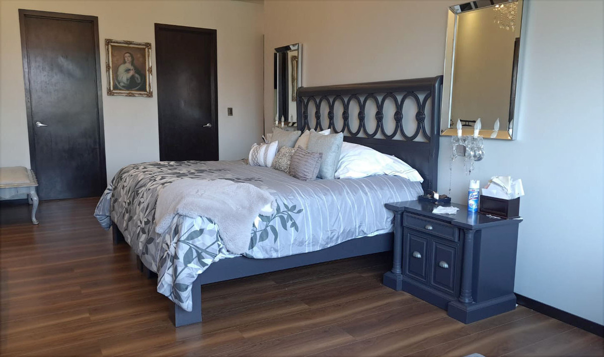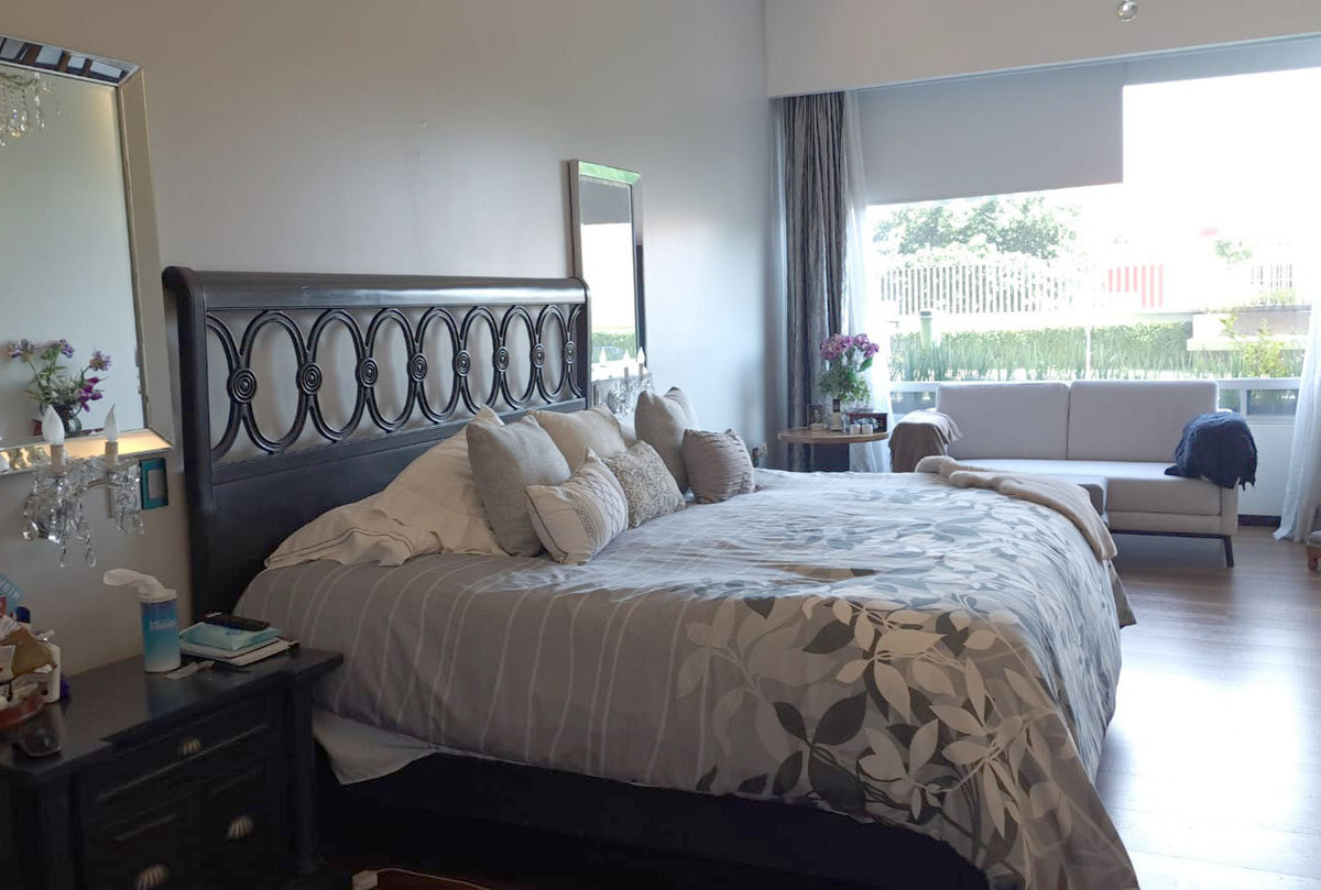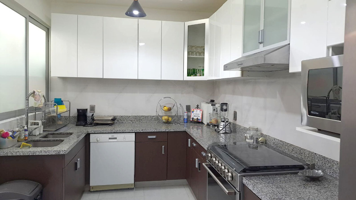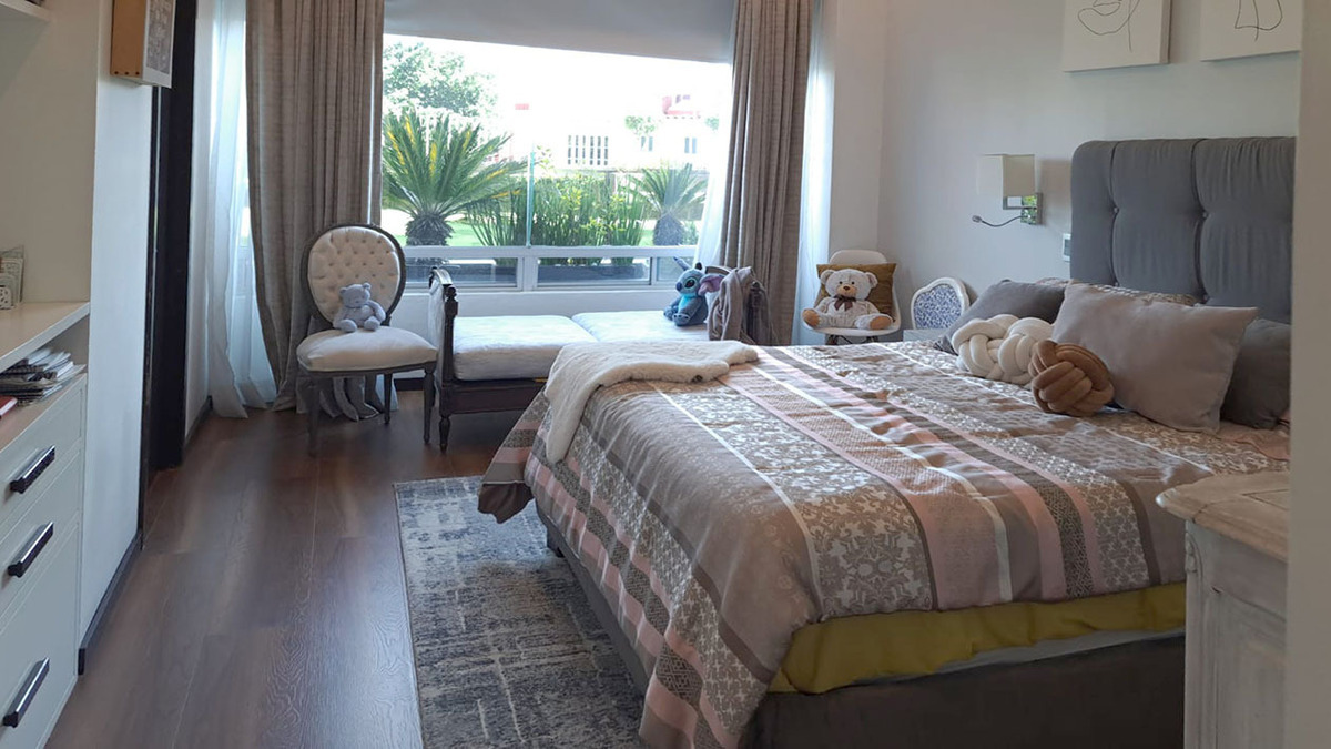 Son tres recámaras, cada una con su baño y vestidores. Cocina amplia, cuarto de servicio con baño, bodega y dos lugares de estacionamiento.
