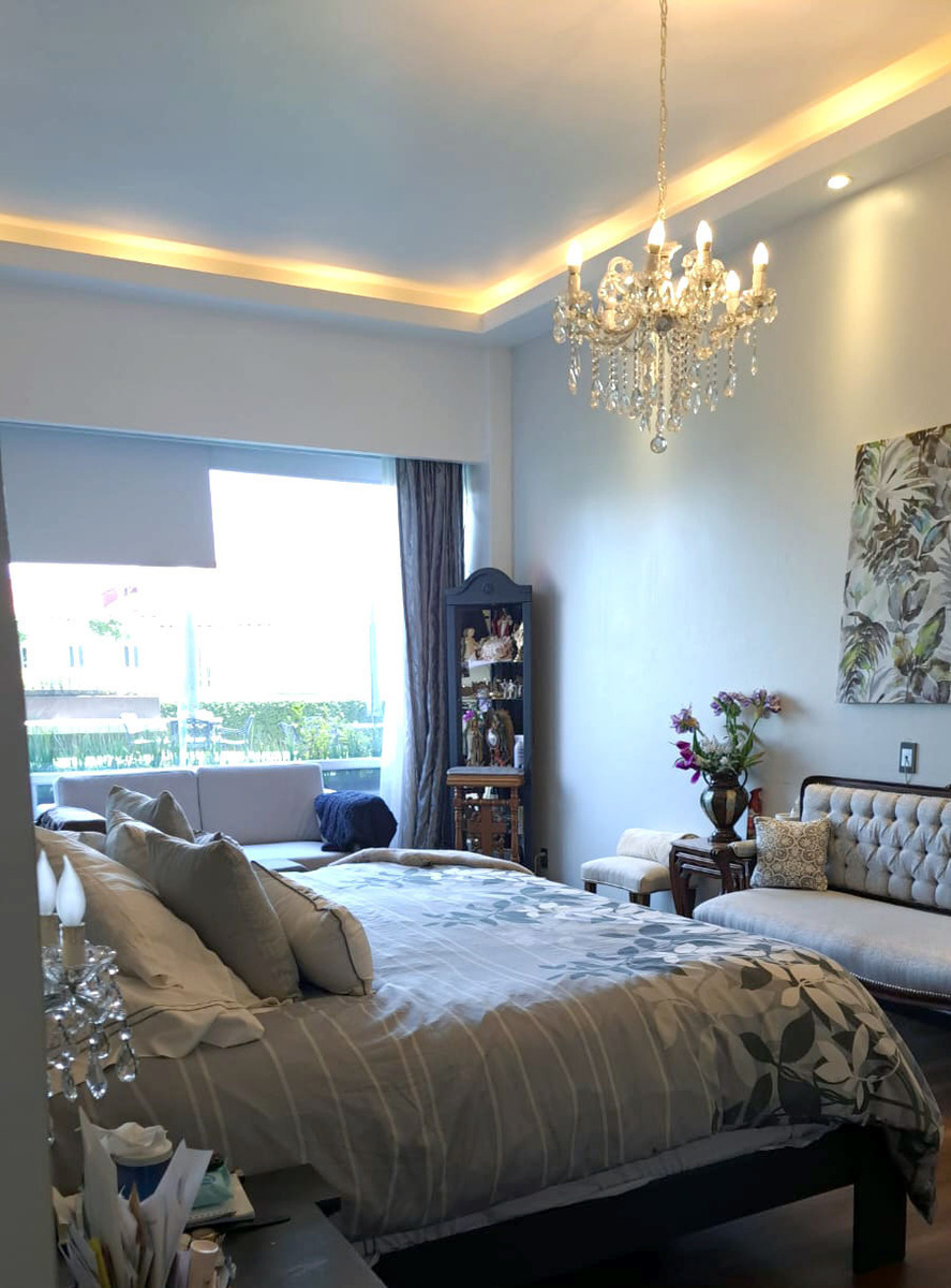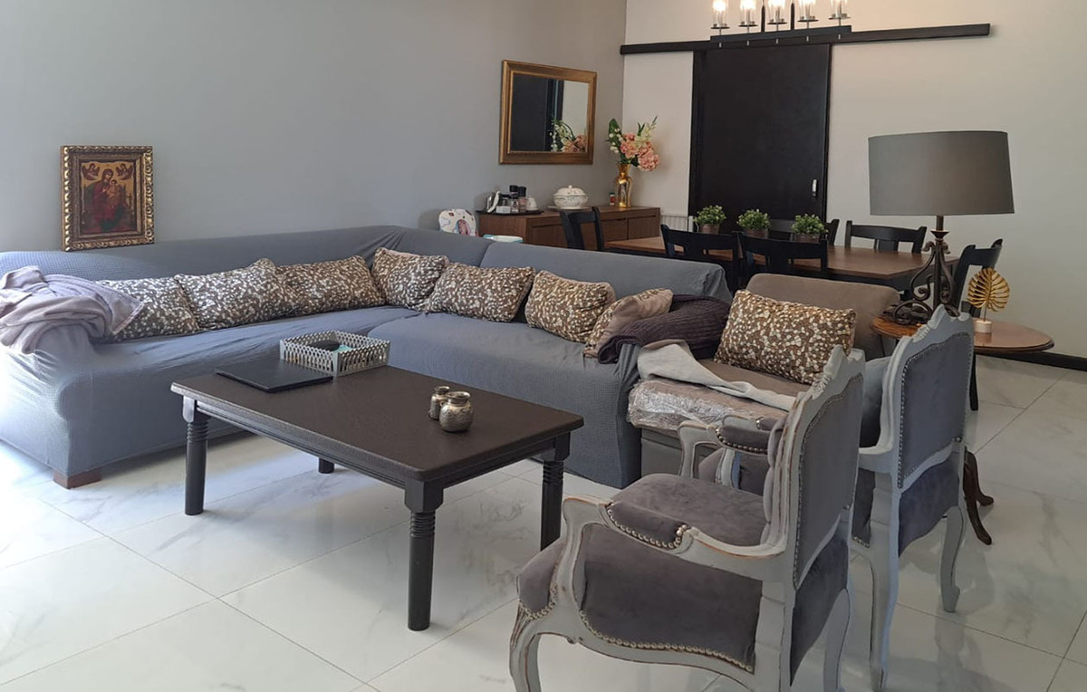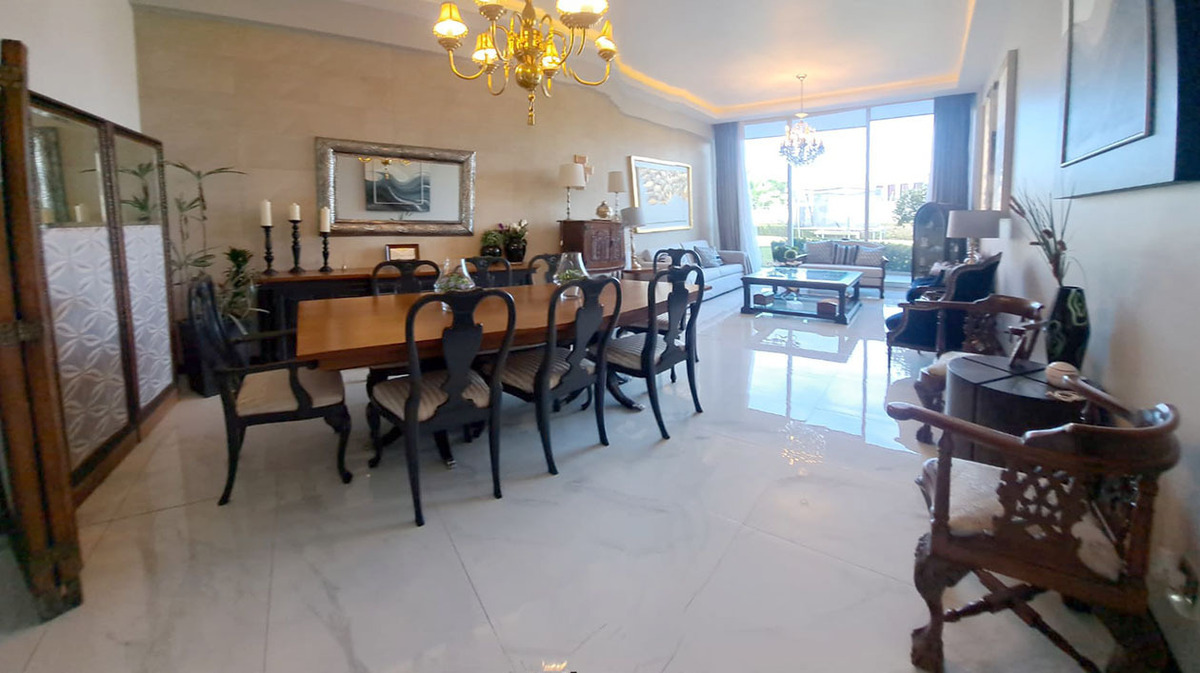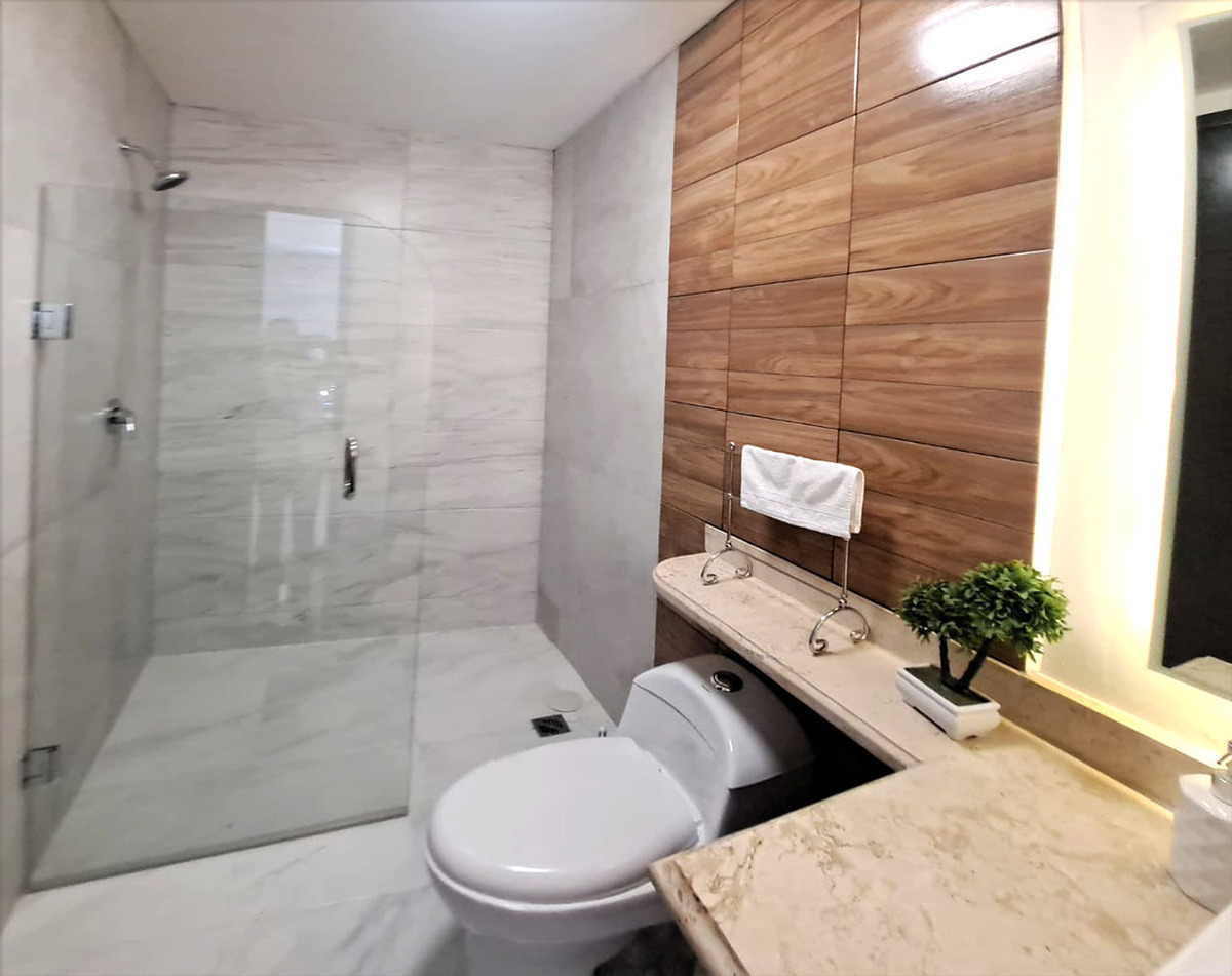 Son tres recámaras, cada una con su baño y vestidores. Cocina amplia, cuarto de servicio con baño, bodega y dos lugares de estacionamiento.