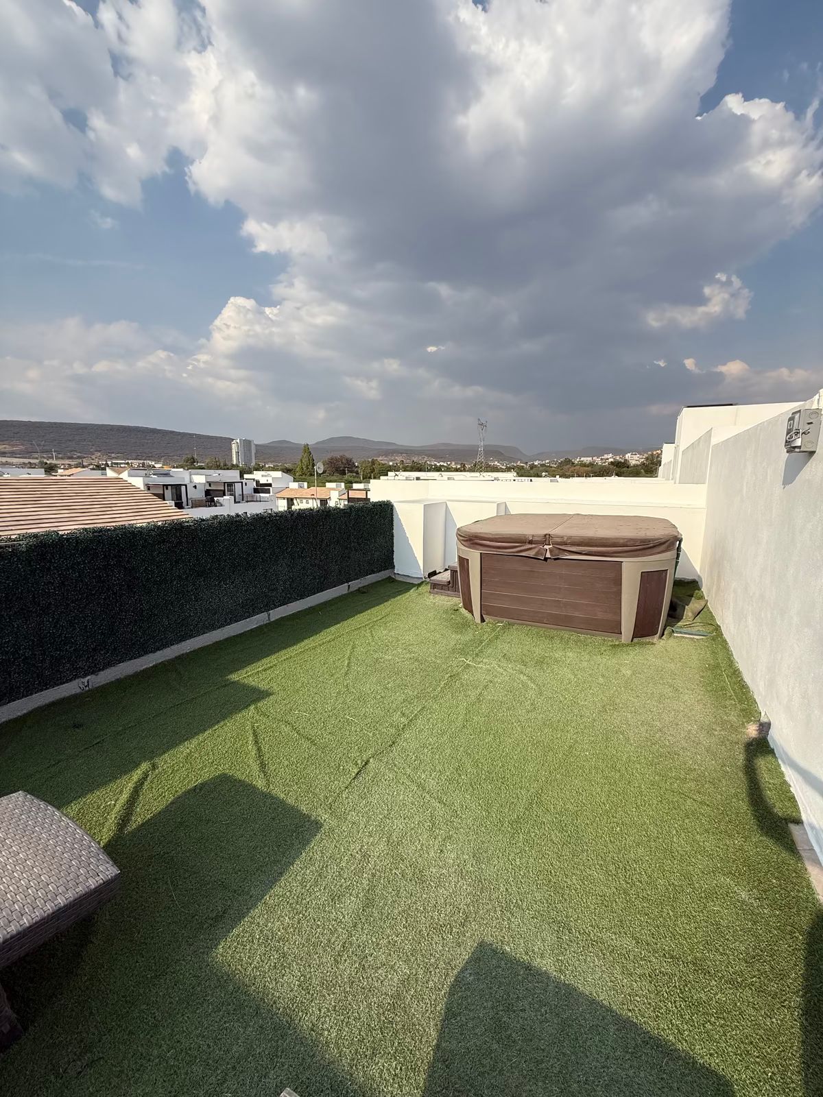 -Tem um terraço no telhado que possui jacuzzi e uma área de churrasqueira.