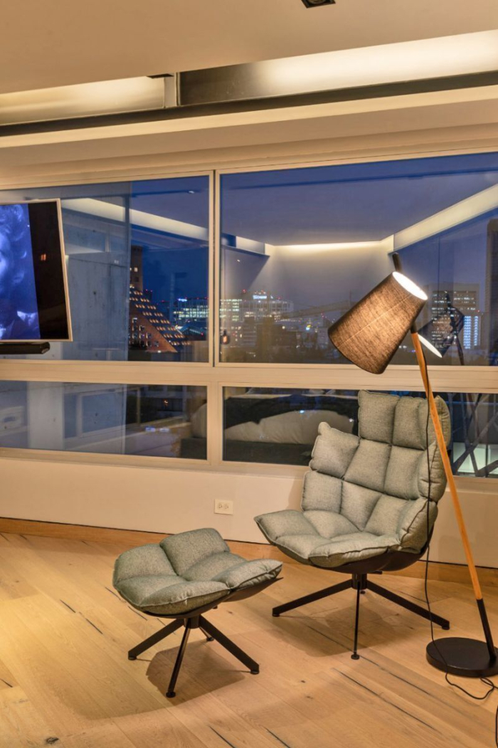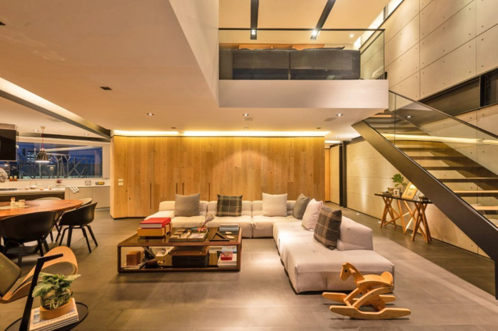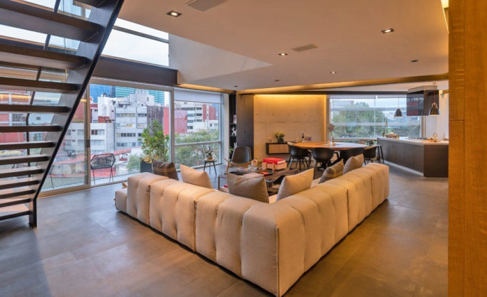 A la entrada de este departamento nos impacta la amplitud que da la doble altura y el caudal de luz que entra por sus grandes ventanales desde donde podemos observar las copas de los arboles, vista privilegiada en Polanco.