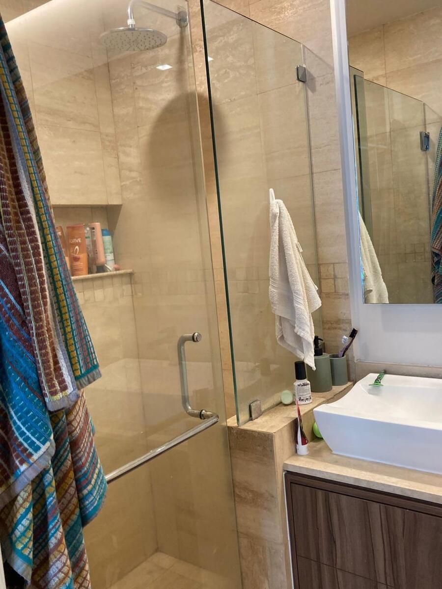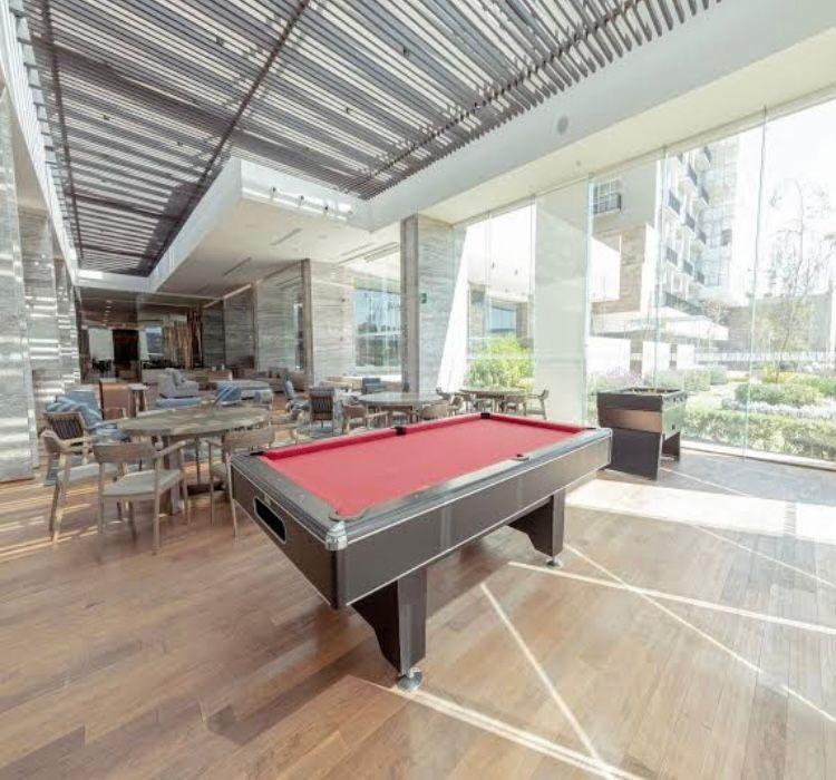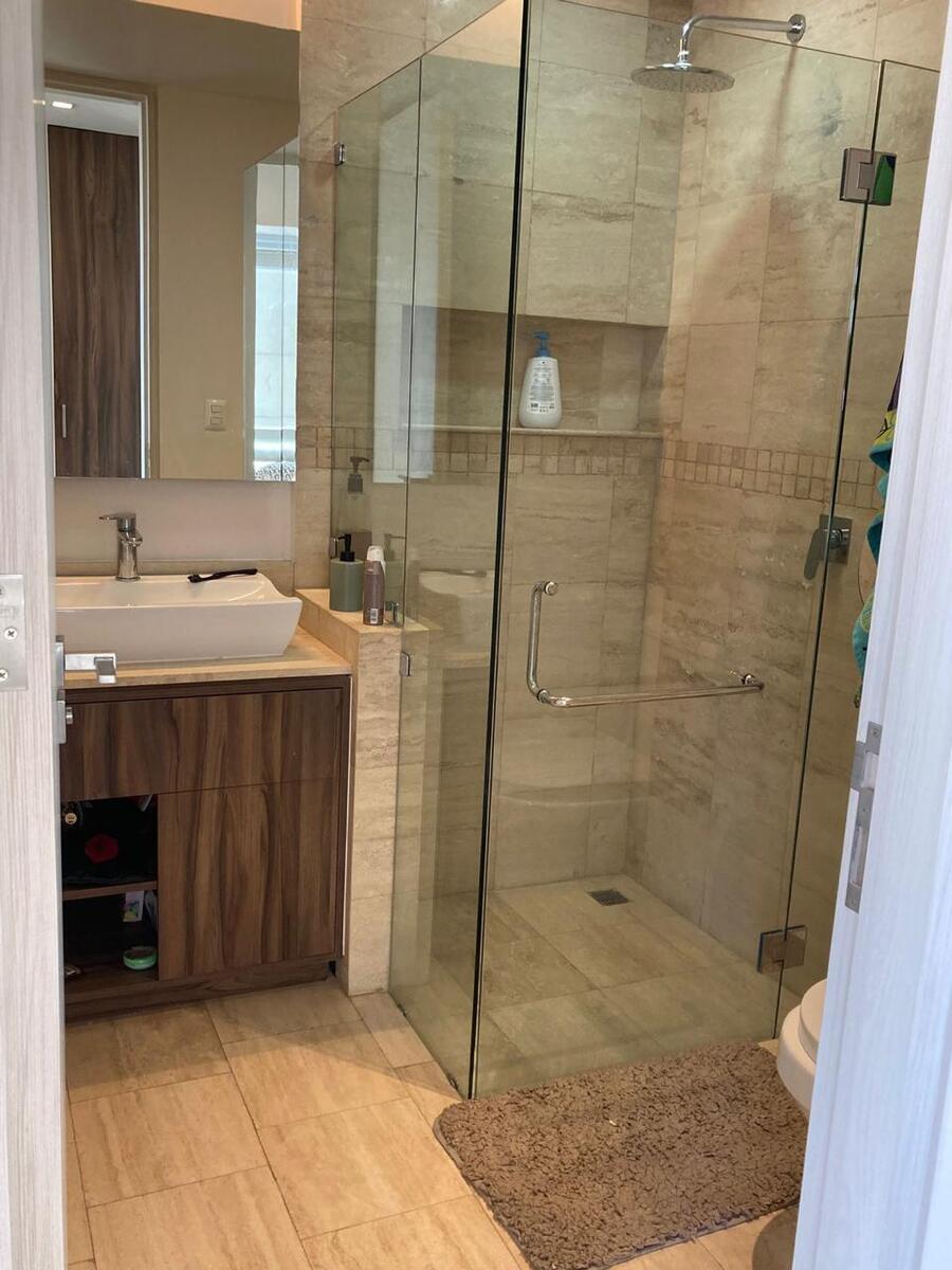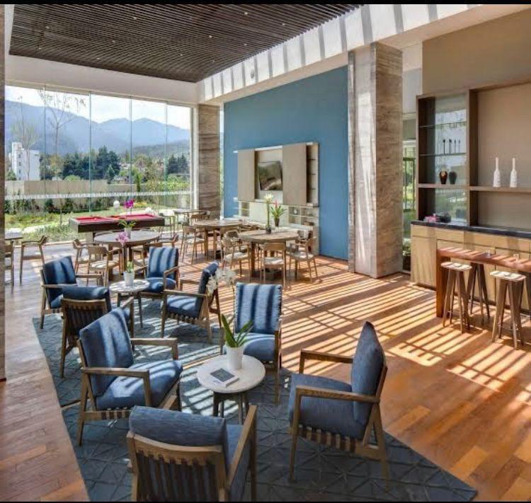 Acabados con cubierta de granito, mármol en los baños, pisos con madera de ingeniería, altura de 2.80 metros .