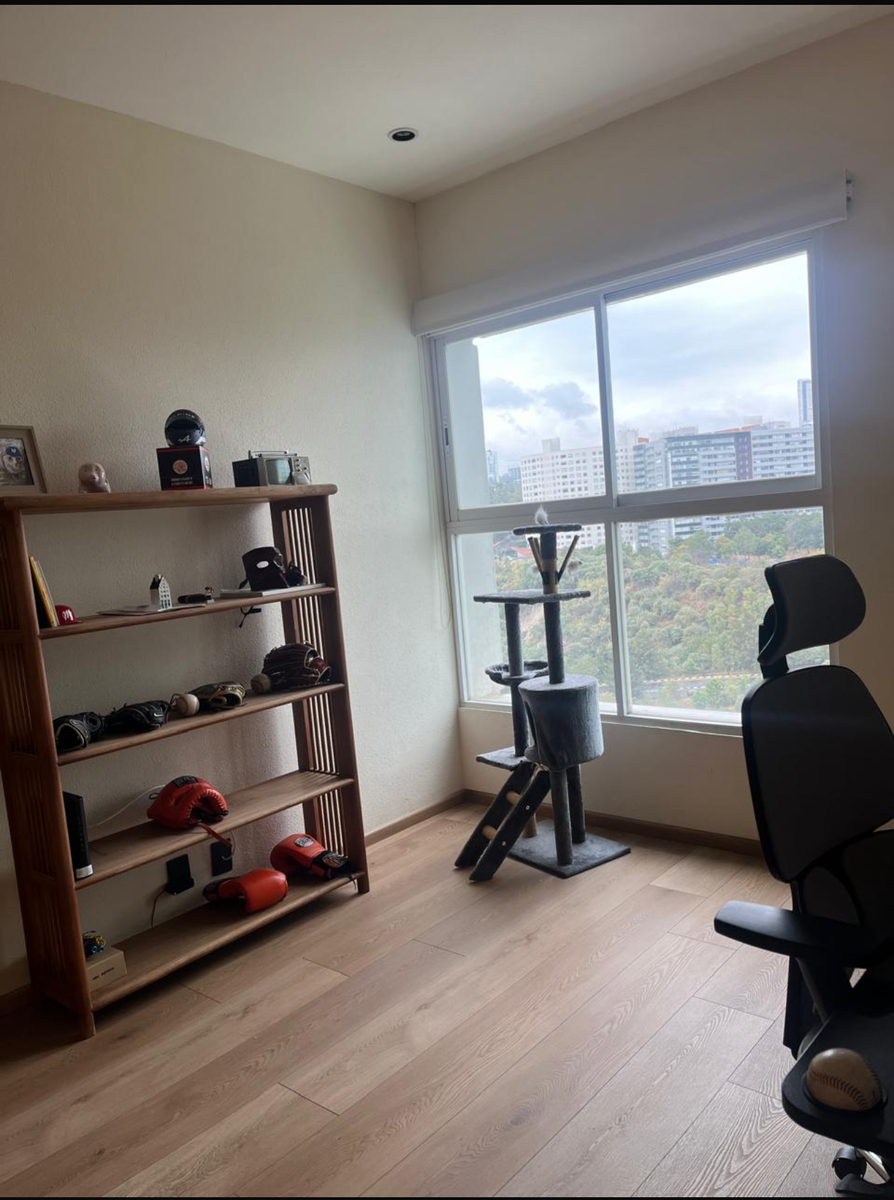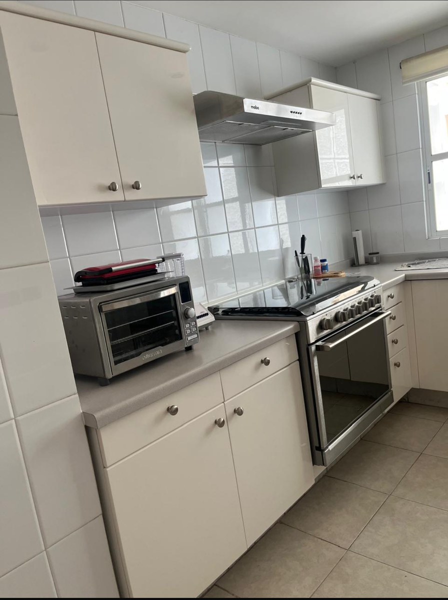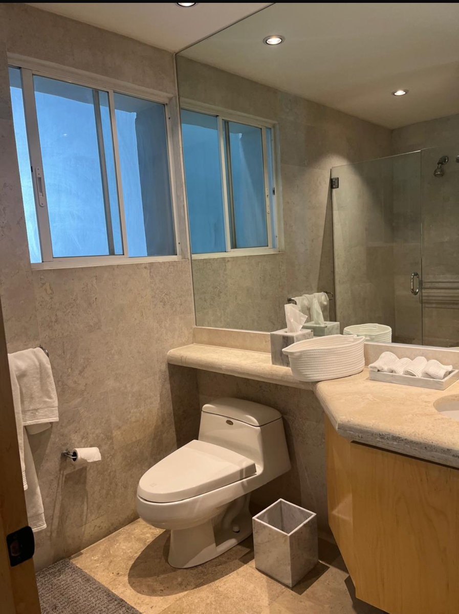 El departamento consta de estancia con amplios ventanales de cristal, baño completo, cocina equipada , despensa, cuarto de servicio con baño , dos recamaras la principal con baño completo y closet, recamara 2 con closet.