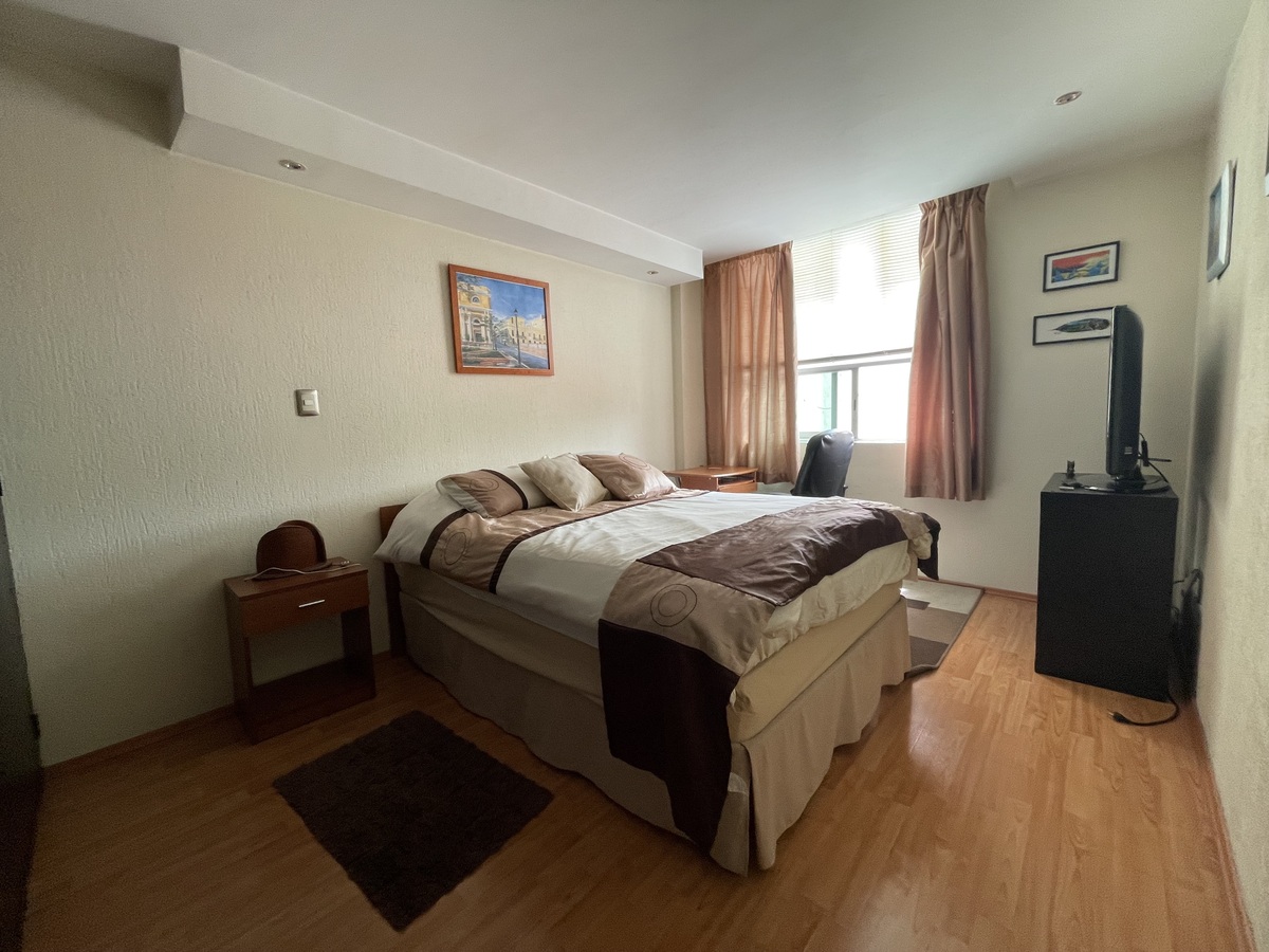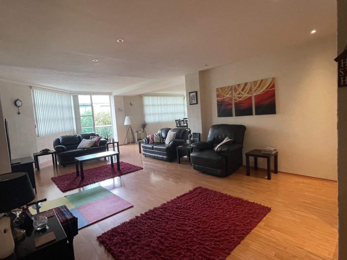 Cuenta con vigilancia las 24 horas, 3 recámaras, sala comedor, cocina, área de lavandería, cuarto de servicio, dos lugares de estacionamiento.
