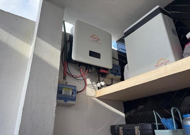 recamaras y en la sala comedor, closets, abanicos, paneles solares, batería, asi