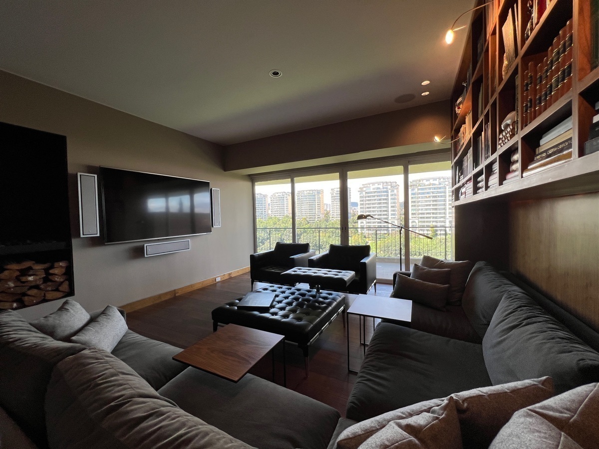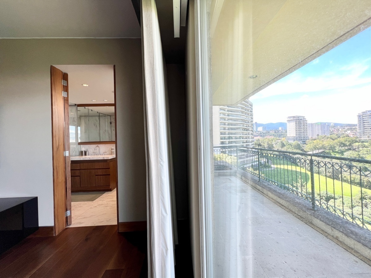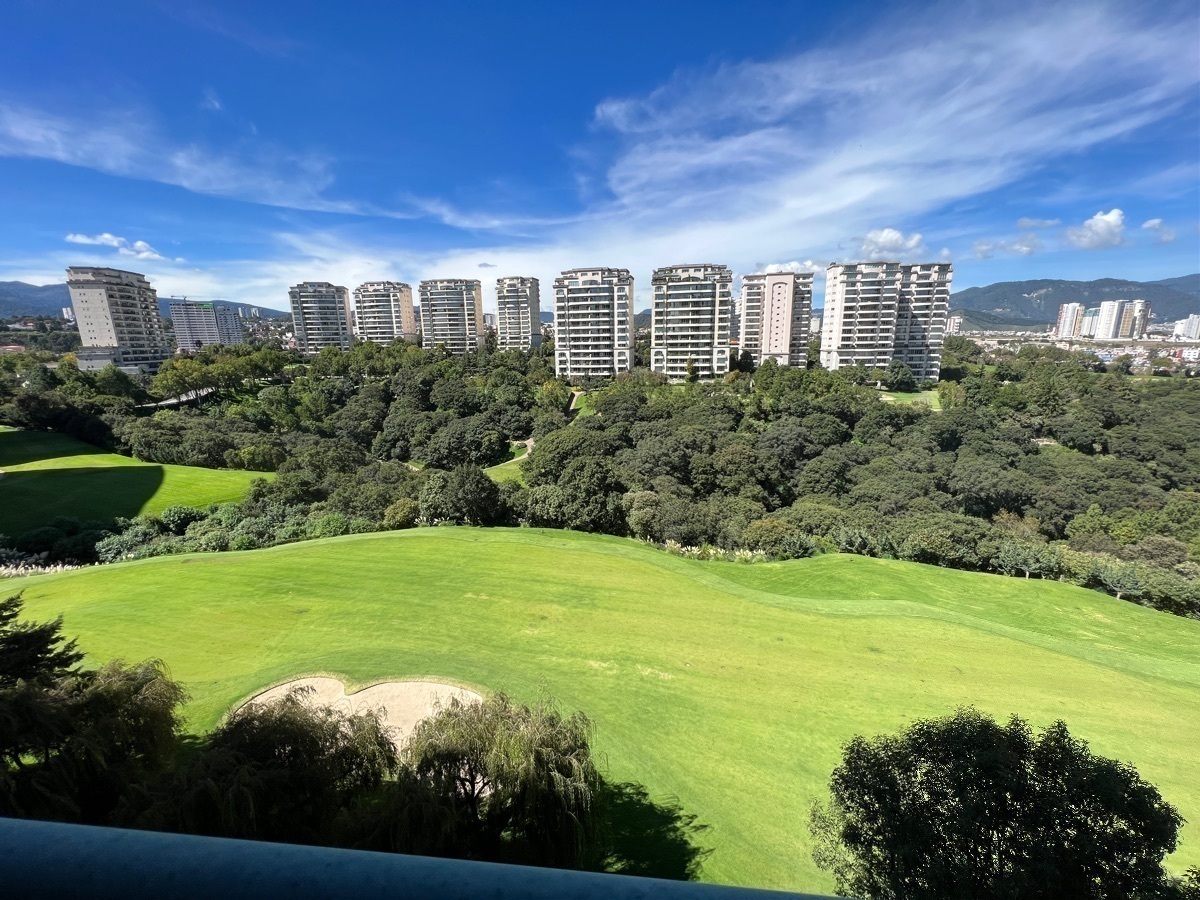 Excelente departamento SUPER MODERNO en Venta en el exclusivo Club de Golf Bosques. Muy buena orientación, pisos de madera de ingeniería, super terrazas extra grandes, elevador directo al piso, gran sala y comedor con espléndida vista al campo de golf . Acabados de lujo. Family, y despacho social con bar y chimenea. 3 recamaras con vestidor y baño, la principal con dos mega vestidores , doble baño. Despacho que podria ser cuarta recamara. Family mas intimo.