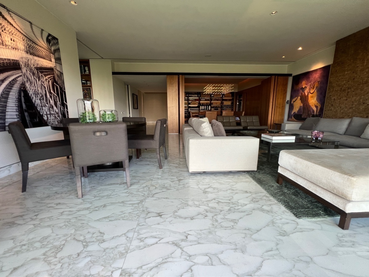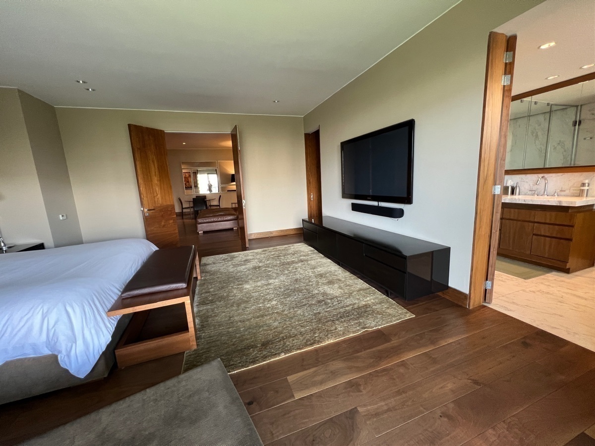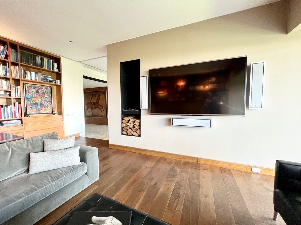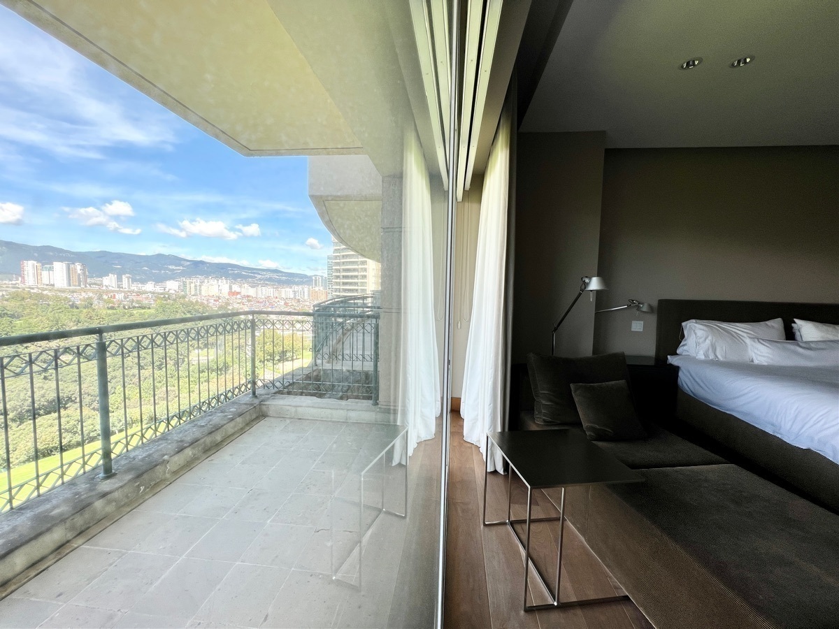 Excelente departamento SUPER MODERNO en Venta en el exclusivo Club de Golf Bosques. Muy buena orientación, pisos de madera de ingeniería, super terrazas extra grandes, elevador directo al piso, gran sala y comedor con espléndida vista al campo de golf . Acabados de lujo. Family, y despacho social con bar y chimenea. 3 recamaras con vestidor y baño, la principal con dos mega vestidores , doble baño. Despacho que podria ser cuarta recamara. Family mas intimo.