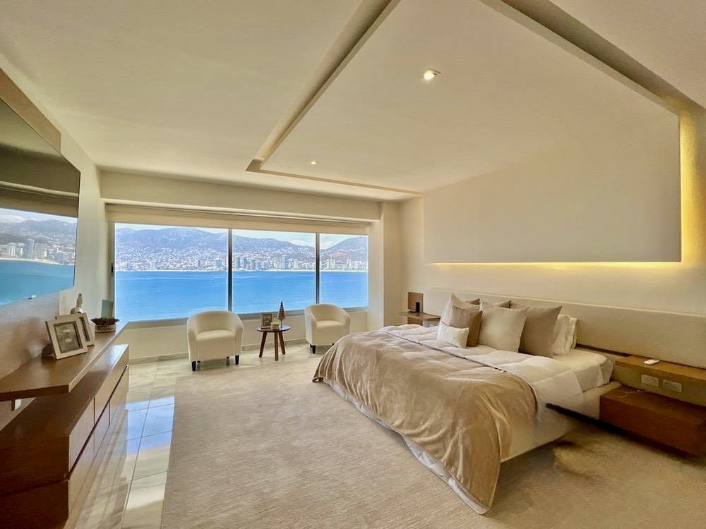Divino departamento totalmente Remodelado, Ubicado en la "Torre Montemar" de únicamente 14 departamentos con acceso directo al mar, En la exclusiva zona de Brisas Guitarrón, Inmejorable ubicación, Divinas vistas panorámicas a la bahía de Acapulco, La reconocida "Torre Montemar" cuenta con amenidades AAA, Varias albercas con sus terrazas y asoleaderos, Muelle privado para yates, Palapa, Zona de asador, Jacuzzi con espectacular vista a la bahía, Salón de juegos, Gimnasio, Cancha de Padel, Zona para adultos exclusivamente, Área de estacionamientos y Seguridad privada 24/7,