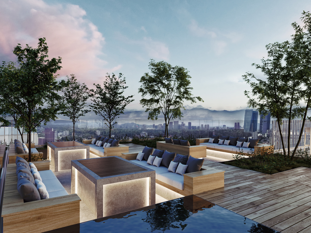 Para el área social cuenta con excelentes amenidades para brindar el mayor confort , gimnasio con sauna, business center, kids club, pet zone, areas verdes, carril de nado, SPA, en el roof garden se encuentra el sky bar con área lounge , tepanyaki y grill, sky pool con una de las mejores vistas del sur de la CDMX,