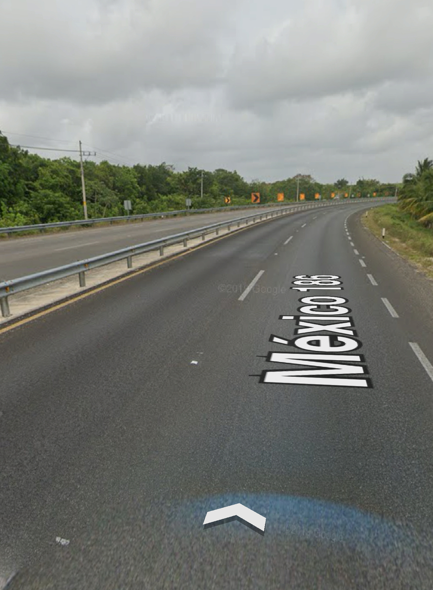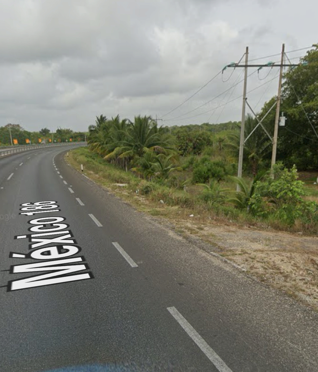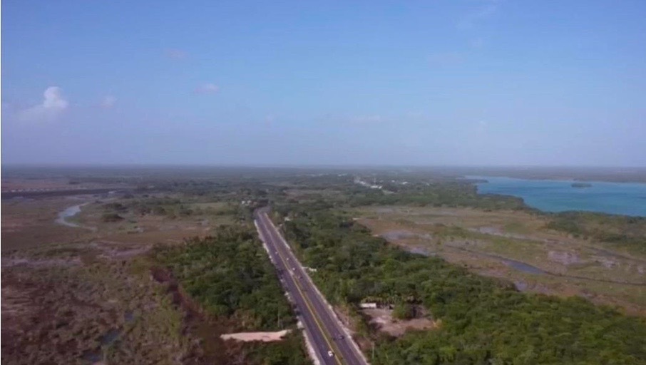 Extensión: 80mts de carretera x 250mts largo x 80mts del canal que conduce a las Lagunas de Bacalar.