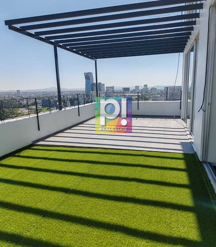 Cuenta con: sala y comedor con doble altura con acceso a la terraza que es amplia, cocina integral con isla y alacena, medio baño de visitas, cuarto de lavado, 3 recámaras con baño completo, la principal con vestidor, las secundarias con clóset, persianas, elevador y cochera techada para 2 autos. Amenities: gimnasio, cancha de pádel, roof garden común. Previa cita. ¡Ven a conocerlo!