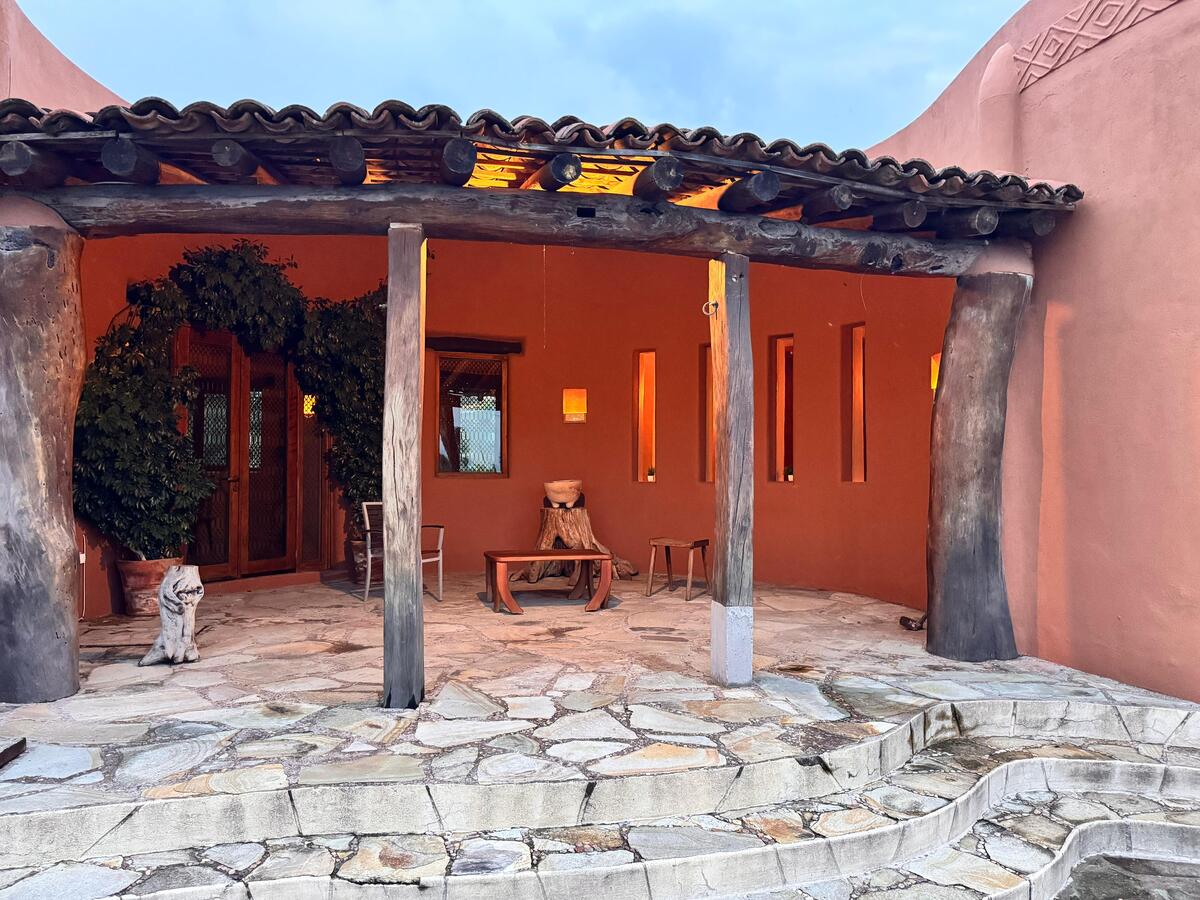 🌵 Nos jardins, a vegetação sustentável —cactos, agaves, caminhos de pedra, água artificial que serpenteia como um riacho— transforma cada canto em uma obra viva.