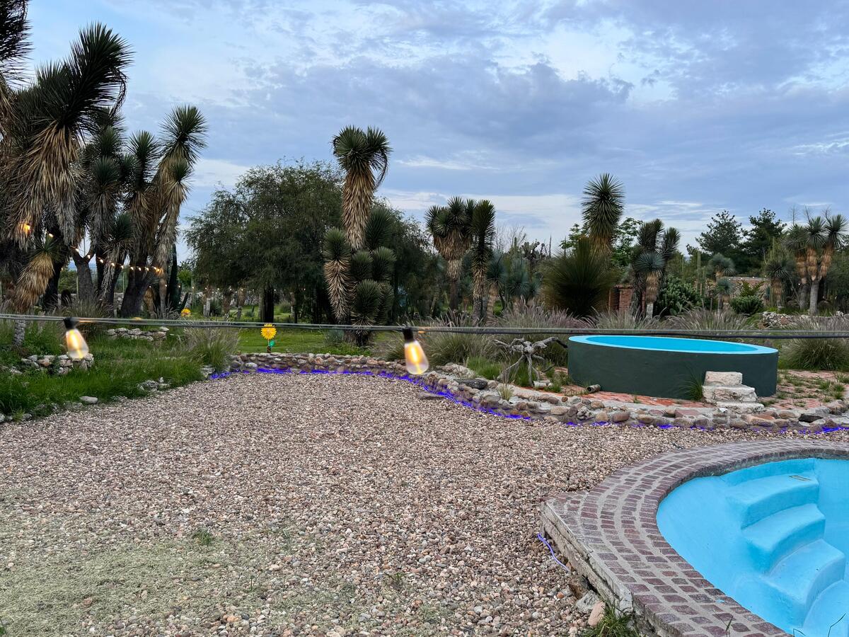 💦 La alberca invita al descanso bajo el cielo claro; el jacuzzi y el temazcal completan la experiencia de bienestar.