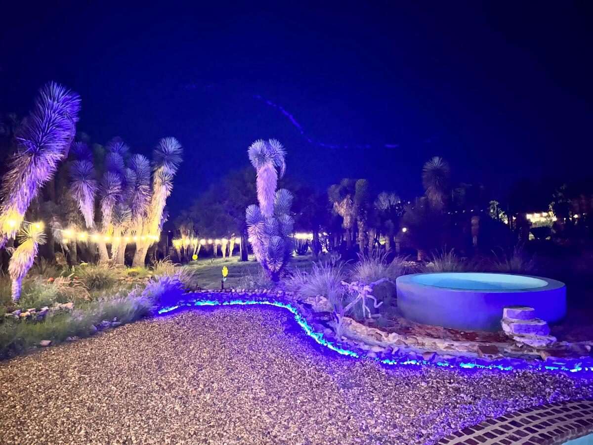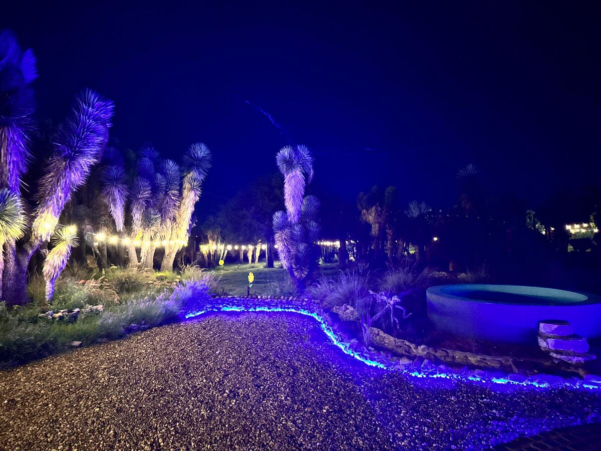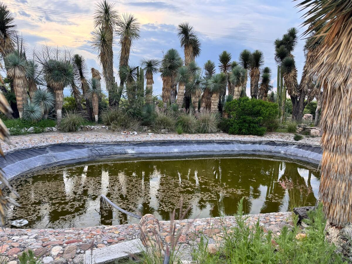 🌵 En los jardines, la vegetación sostenible —cactus, agaves, senderos de piedra, agua artificial que serpentea como arroyo— convierte cada rincón en una obra viva.