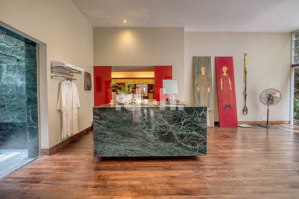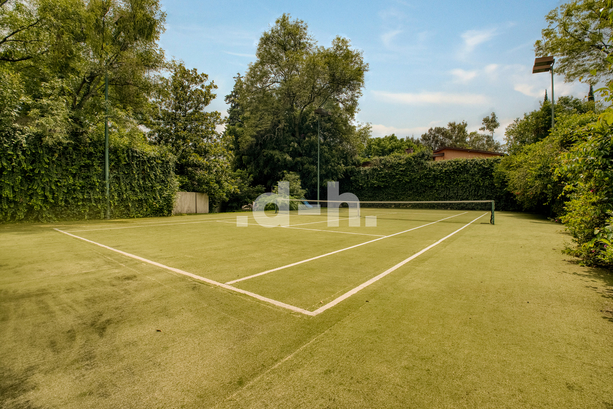 La propiedad cuenta con un enorme comedor formal, una impresionante sala de estar, fuentes de agua, hermosa vegetación y un jardín principal con cancha de tenis, que ofrece una extraordinaria experiencia de vida y entretenimiento.