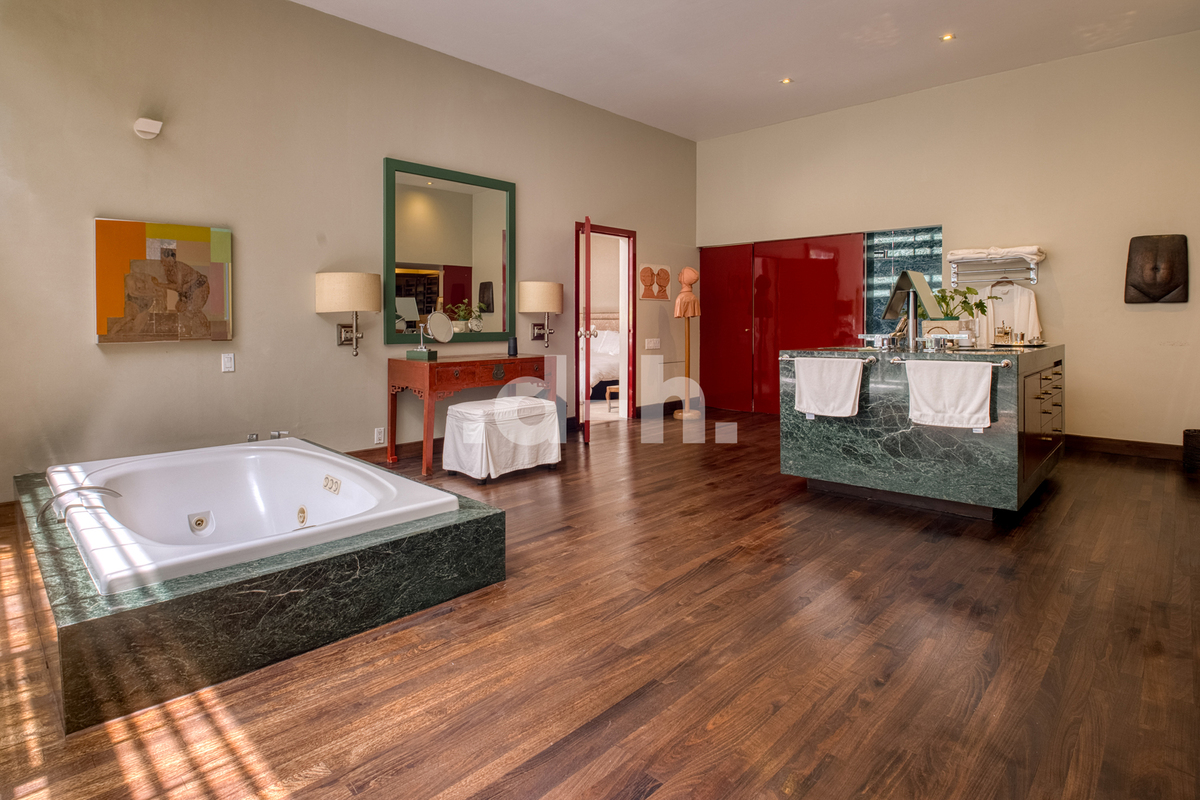 de la Jacaranda es una residencia de elegancia y lujo incomparable, diseñada por el reconocido arquitecto Andrés Casillas. Con una propiedad de 1,996 metros cuadrados, esta exquisita casa está construida alrededor de un patio central y diseñada para albergar una colección de arte y una gran biblioteca.