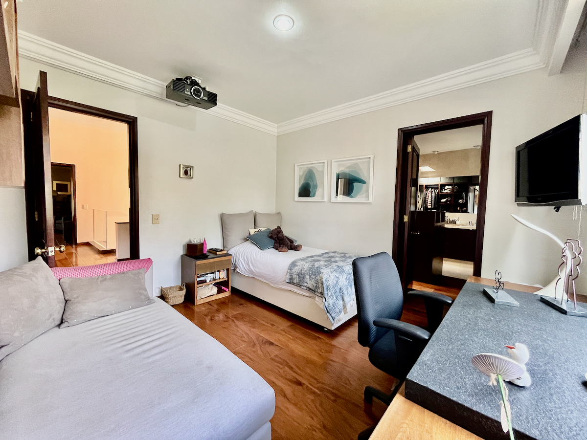 Encantadora residência totalmente remodelada em um condomínio horizontal de apenas 13 casas, com um lindo jardim com fonte no centro das casas. Estrategicamente localizada a apenas 700 metros de Santa Fe e a poucos quilômetros do impressionante Deserto de los Leones. Excelentes acessos e, acima de tudo, um conjunto muito bonito para viver com ótima segurança. Esta espaçosa propriedade tem tudo! Construída em 496 metros quadrados de terreno e 410 metros de construção, oferece um total de 4 quartos, 3 banheiros completos e 2 banheiros sociais; com um design amplo e iluminado que inclui uma generosa sala, sala de jantar, aconchegante sala de estar, pequeno escritório, jardim, ampla terraço, cozinha fechada, duas amplas despensas, área de café da manhã, quarto de serviço, área de lavanderia, depósitos e tetos altos. Uma oportunidade única para uma vida plena e confortável a um passo da floresta e a 5 minutos de Santa Fe!