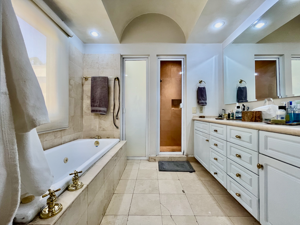 Consulte nosso aviso de privacidade em nosso site.Encantadora residencia totalmente remodelada en condominio horizontal de solamente 13 casas, con un hermoso jardín con fuente al centro de las casas. Estratégicamente ubicada a solo 700 metros de Santa Fe y a pocos kilómetros del impresionante Desierto de los Leones. Excelentes accesos y sobre todo, muy bonito conjunto para vivir con muy buena vigilancia. ¡Esta espaciosa propiedad lo tiene todo!, construida sobre 496 metros cuadrados de terreno y 410 metros de construcción ofrece un total de 4 recámaras, 3 baños completos y 2 medios baños; con un amplio y luminoso diseño que incluye una generosa sala, comedor, acogedora sala de estar, pequeña oficina, jardín, amplia terraza, cocina cerrada, dos amplia alacenas, antecomedor, cuarto de servicio, área de lavado, bodegas, techos altos. ¡Una oportunidad única para una vida plena y confortable a un paso del bosque y a 5 minutos de Santa Fe!
