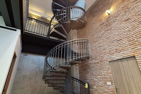 Amplia estancia con un increíble candelabro y escalera que son el corazón del departamento.