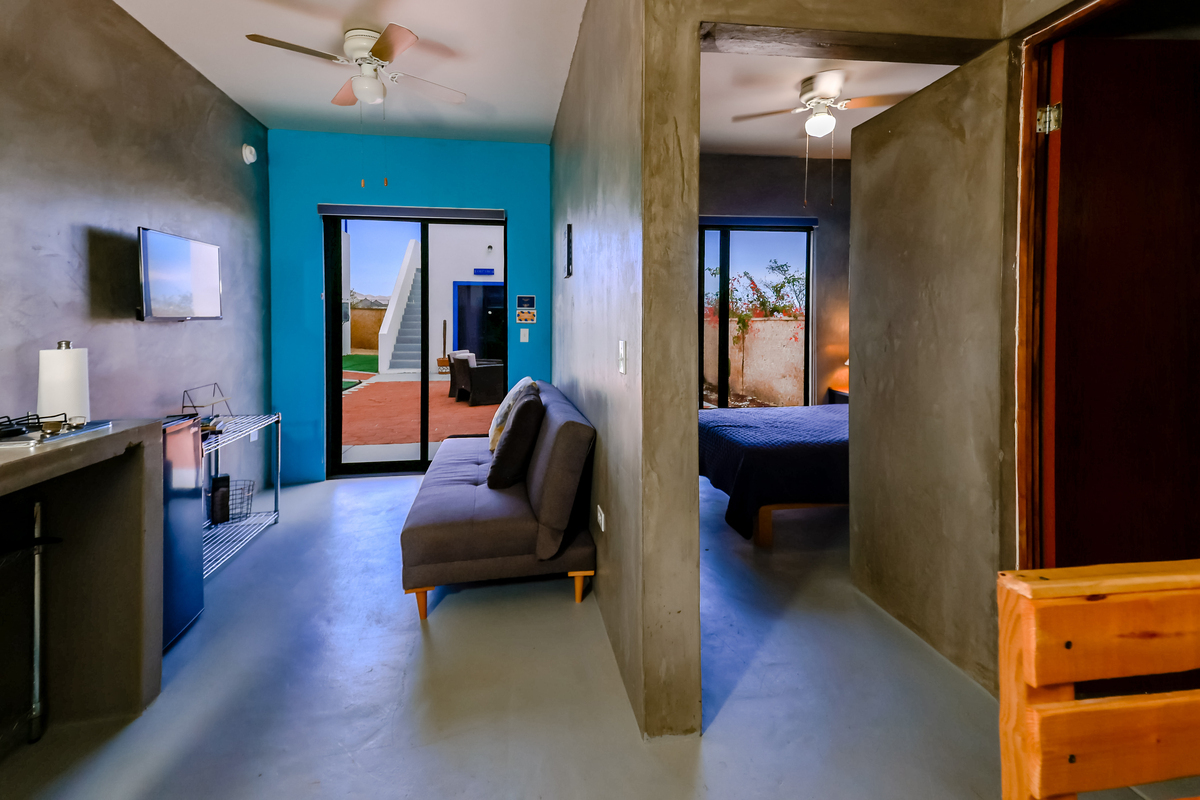 - Villa Mulegé y El Sargento: Estas villas cuentan con dos recámaras con camas matrimoniales, sala, comedor, barra y refrigerador, lo que las hace perfectas para familias o grupos más grandes.