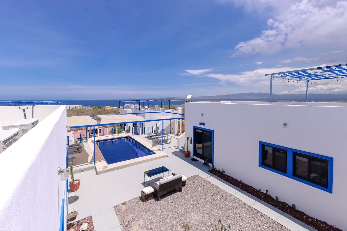 - Villa La Paz: Incluye un pequeño almacén adicional y una espectacular vista hacia la Isla Cerralvo, Punta Arena y las montañas.