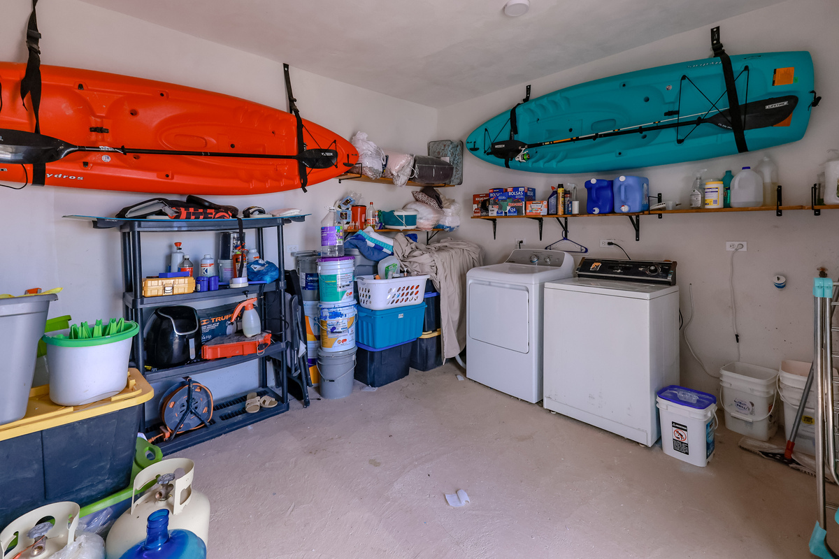 - Estacionamiento y lavandería completamente equipada con lavadora, secadora y lavadero. La villa dispone de una cisterna con capacidad de 13,000 litros y tinacos de 750 litros, además de dos tinacos adicionales de 1,100 litros en la zona de lavandería.