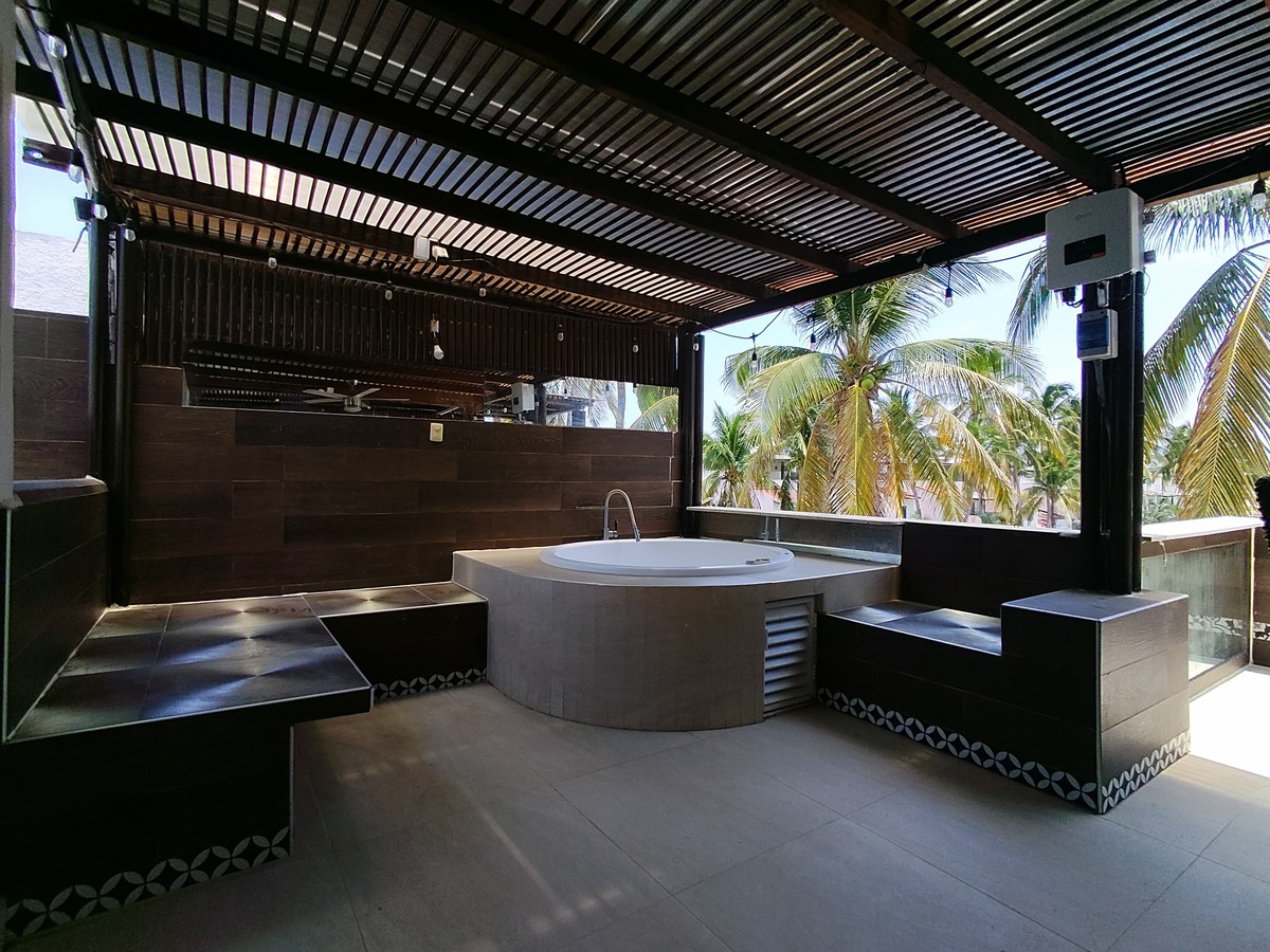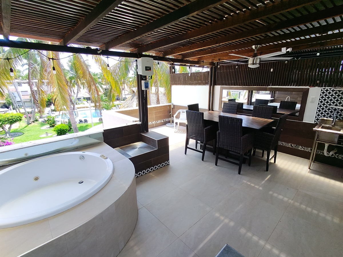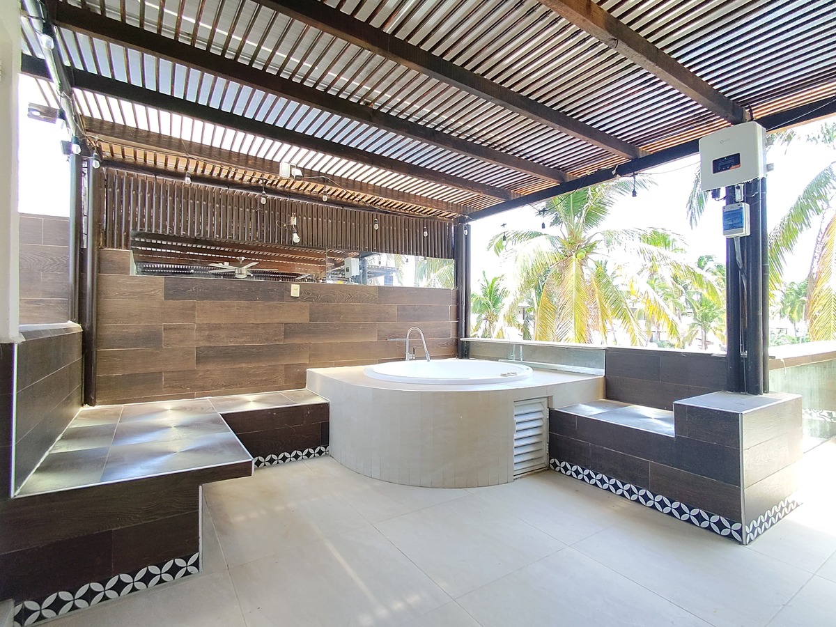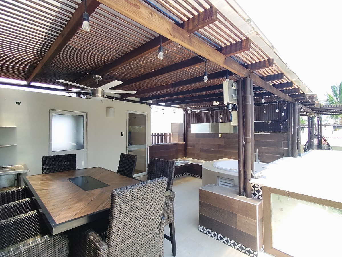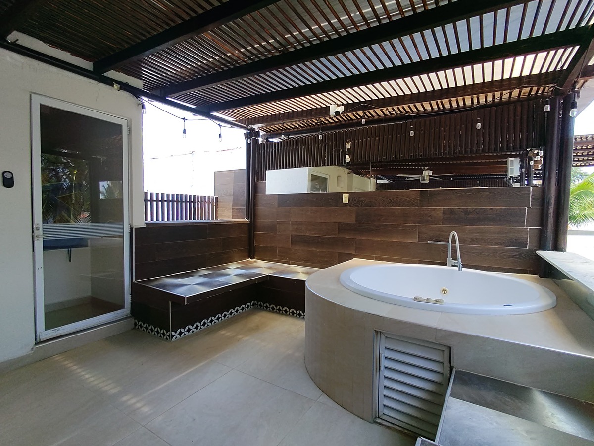 La villa en sí cuenta con tres amplias recámaras, dos baños completos y un medio baño para visitas, lo que la hace ideal para familias o para recibir invitados. Dispone de cuarto de lavado, sala-comedor, y una cocina completamente equipada. Uno de los mayores atractivos es su hermoso roof garden, perfecto para disfrutar de atardeceres espectaculares y momentos de relajación.