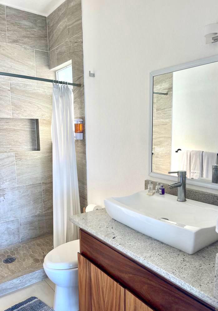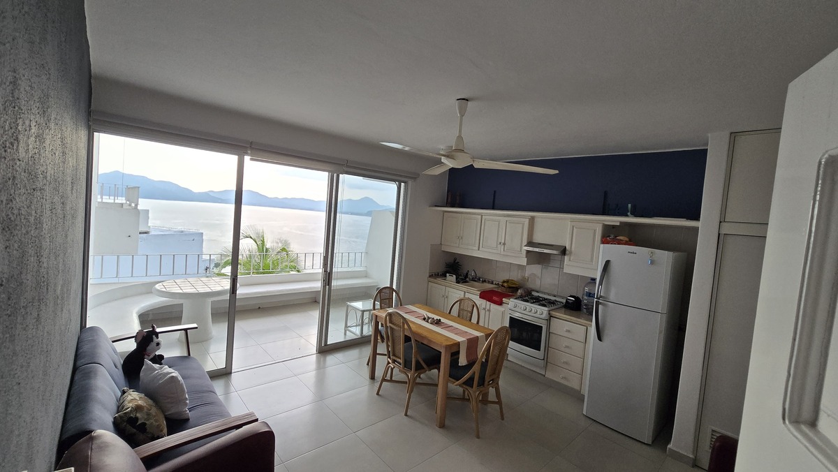 El departamento cuenta con una recámara con vestidor, un baño completo, sala y comedor muy amplios, y una terraza con vistas espectaculares al mar, ideal para relajarse y disfrutar del paisaje.