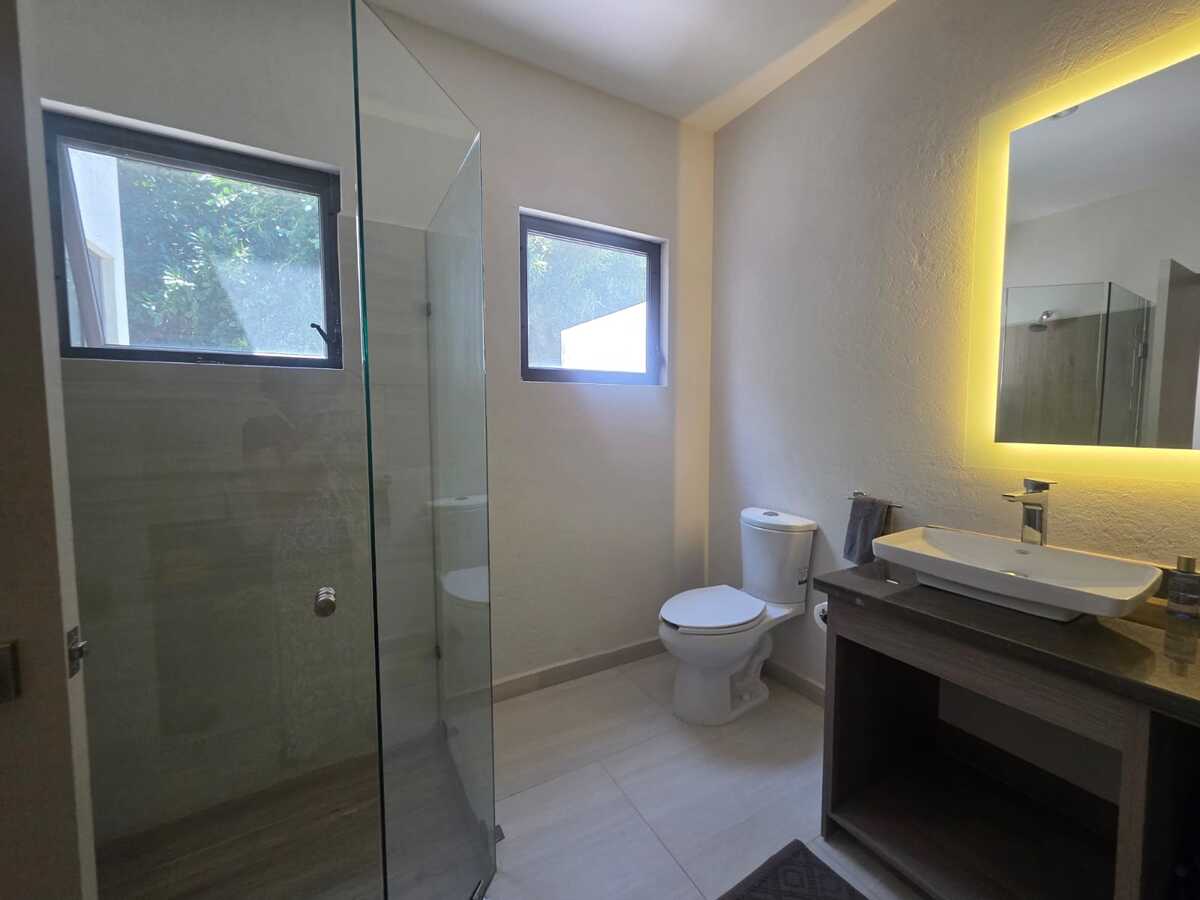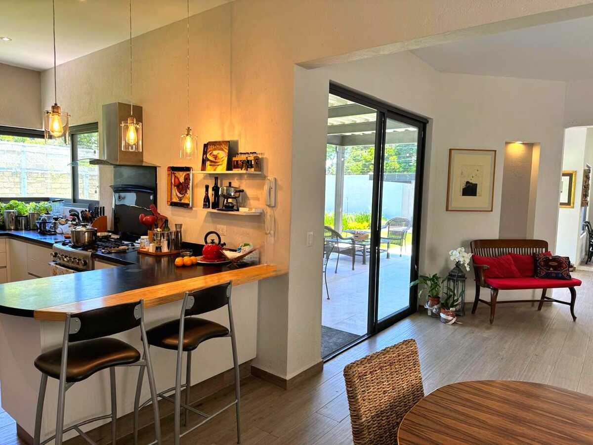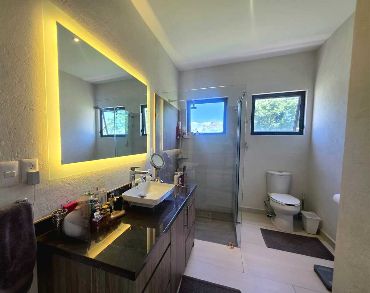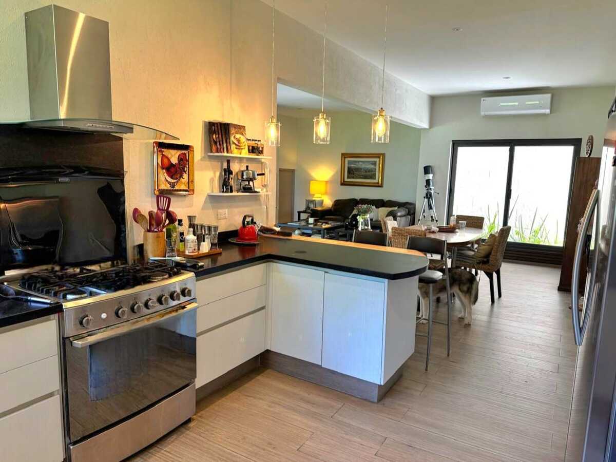 Ofrece tres recámaras, cada una con vestidor y baño completo, además de un medio baño de visitas. La cocina está equipada con cubierta de granito y se integra a las áreas sociales de sala y comedor con gran iluminación natural.