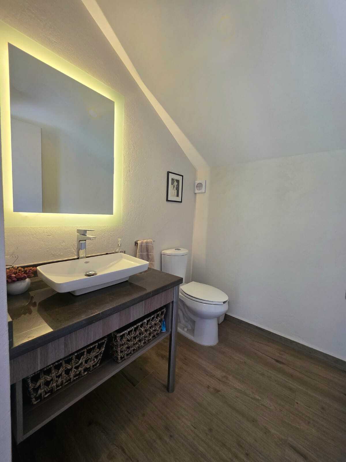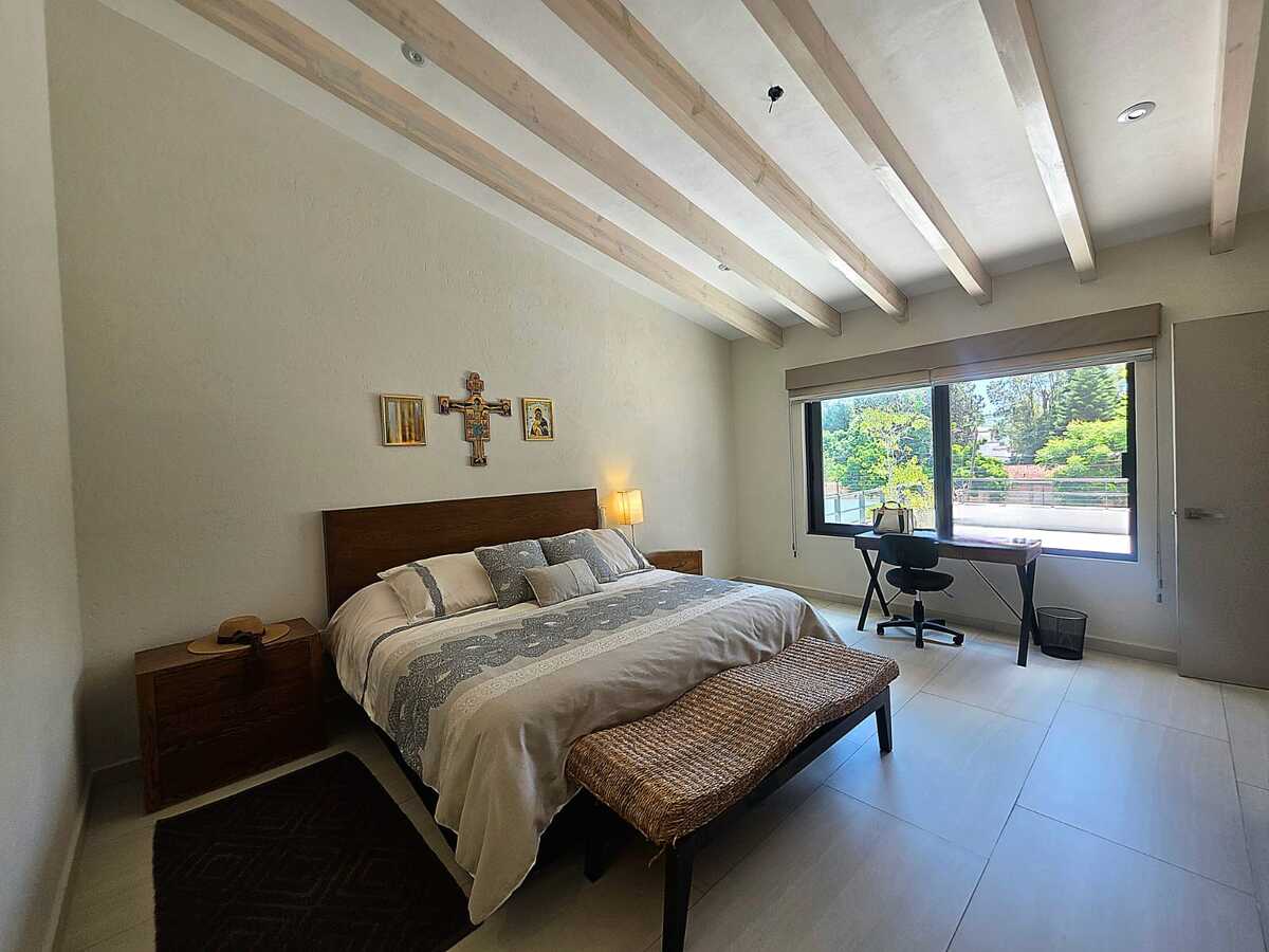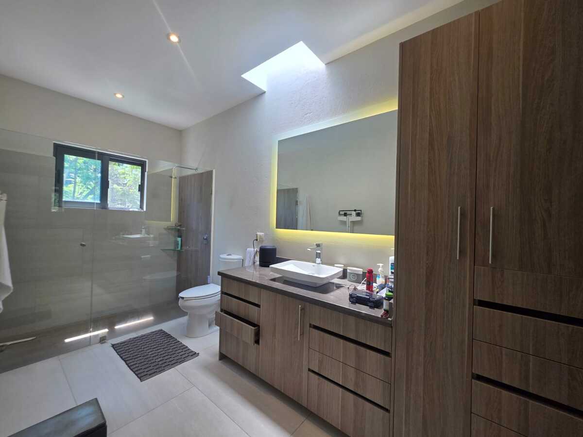 Ofrece tres recámaras, cada una con vestidor y baño completo, además de un medio baño de visitas. La cocina está equipada con cubierta de granito y se integra a las áreas sociales de sala y comedor con gran iluminación natural.