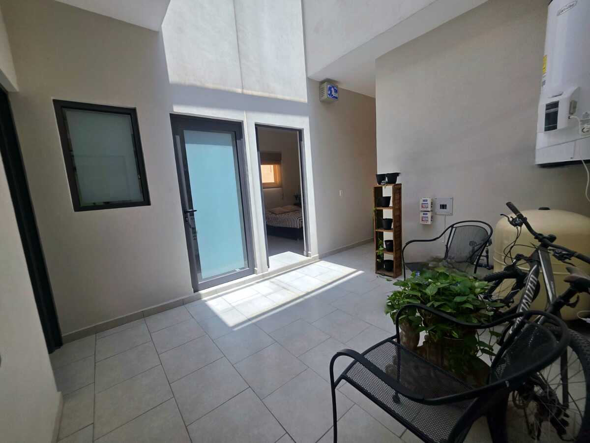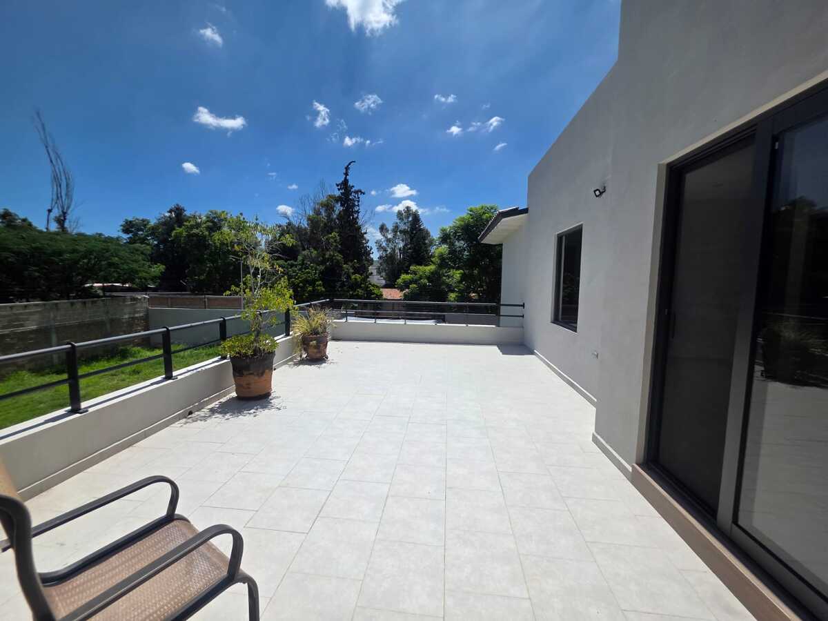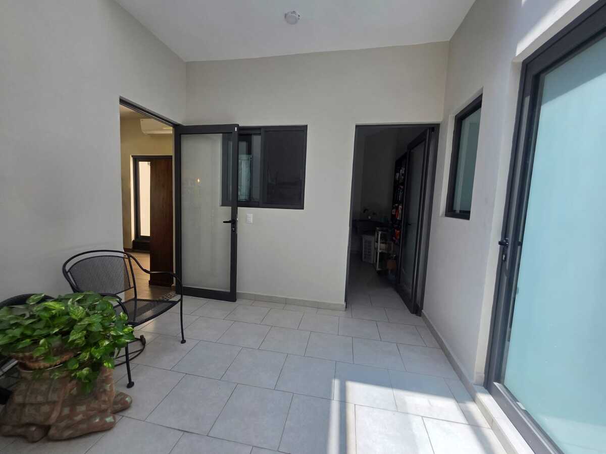 Cuenta con cuarto de servicio, área de lavado, jardín con terraza, así como un pasillo lateral de servicio. Entre sus comodidades se incluyen cisterna, hidroneumático, persianas, mosquiteros, lámparas y sistema de alarma.