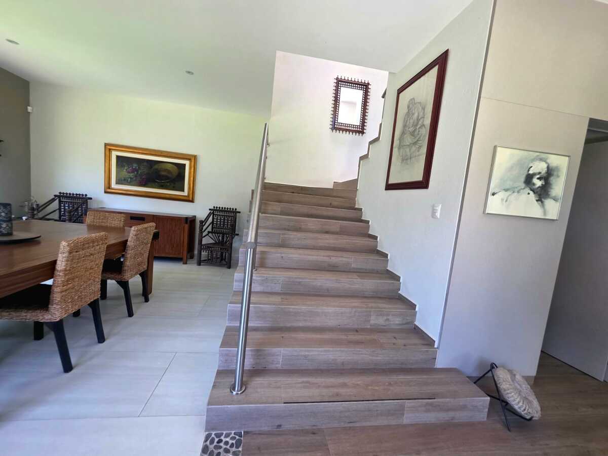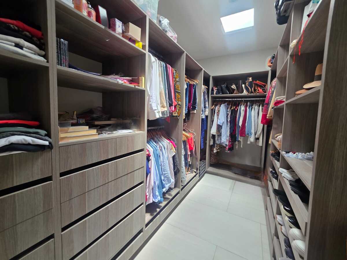 Oferece três quartos, cada um com closet e banheiro completo, além de um lavabo para visitas. A cozinha está equipada com bancada de granito e se integra às áreas sociais da sala e do jantar com ótima iluminação natural.
