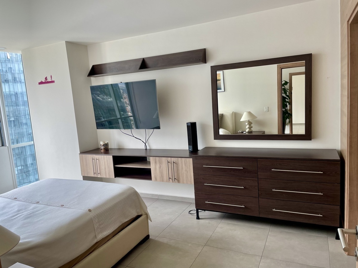 El moderno departamento en renta está en condiciones impecables, equipado de lujo, amueblado con inmejorable gusto. Espacios agradables y bien distribuidos, excelentes iluminación, ventilación y temperatura.