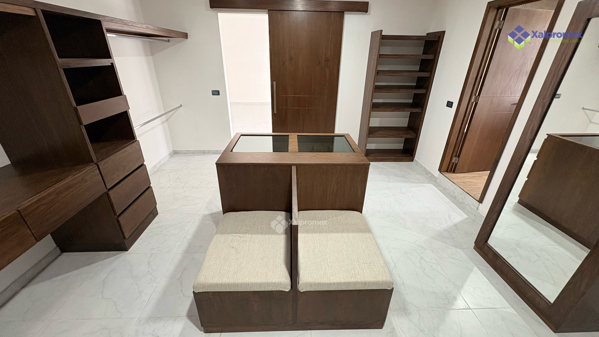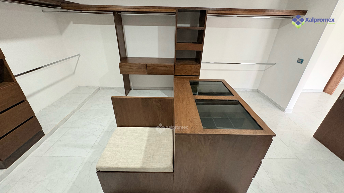 Cuenta con doble frente, calle privada, tres recámaras con vestidor y baño cada una.