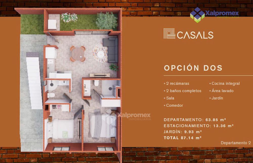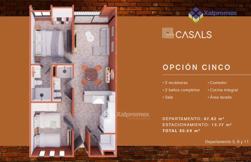 El conjunto contará con 11 departamentos en 5 modelos diferentes, todos con 2 recámaras y 2 baños completos, cajón de estacionamiento, cocina integral, closets y cisterna.