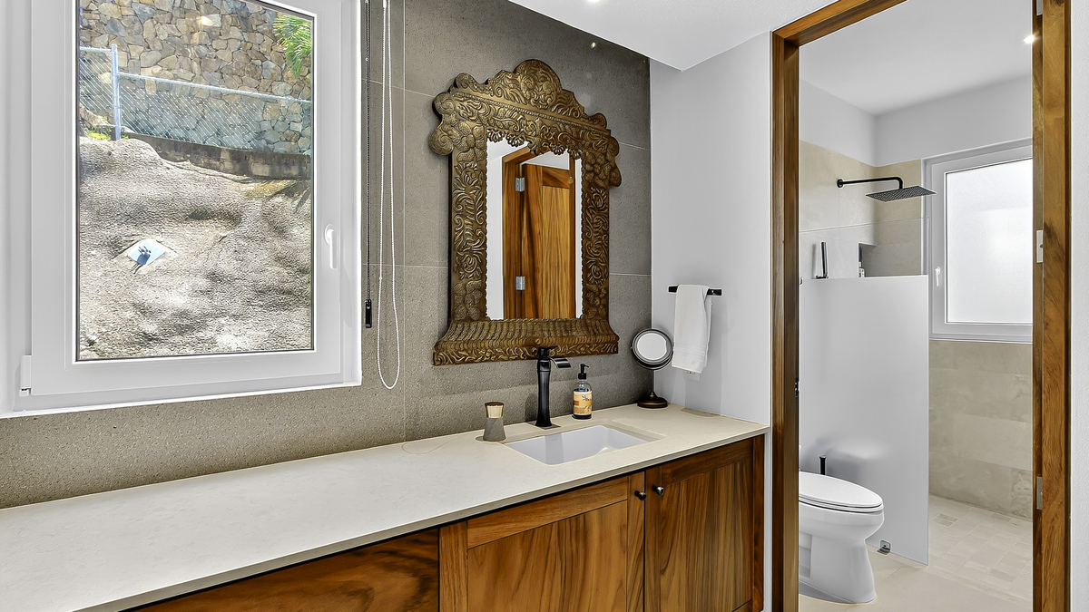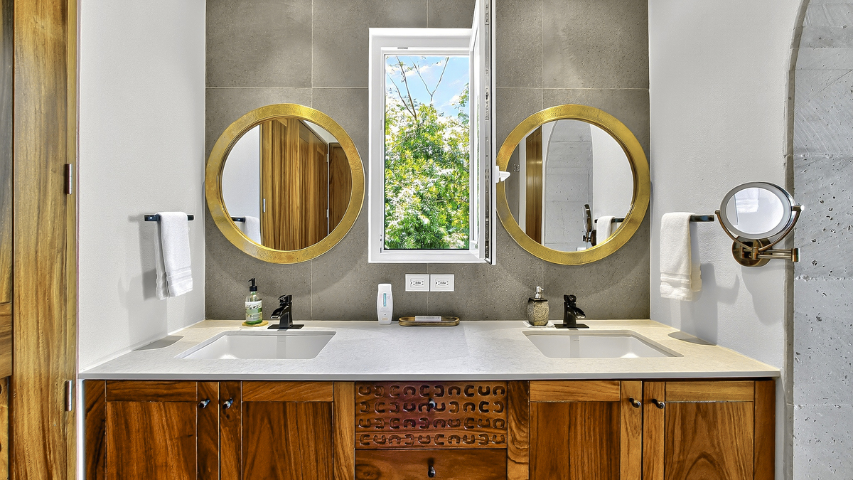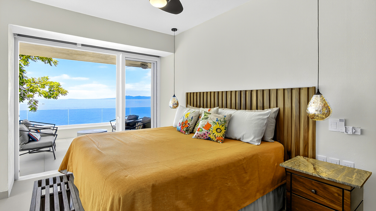 Cada recámara cuenta con baño privado, y la propiedad ha sido mejorada con acabados de alta gama: carpintería personalizada, detalles en cantera, techo de bóveda, baños remodelados, persianas motorizadas, sistema de filtración de agua y generador de energía de respaldo. El balcón de gran tamaño ofrece el espacio exterior ideal para cenar, recibir invitados o simplemente relajarse mientras se disfrutan los atardeceres.