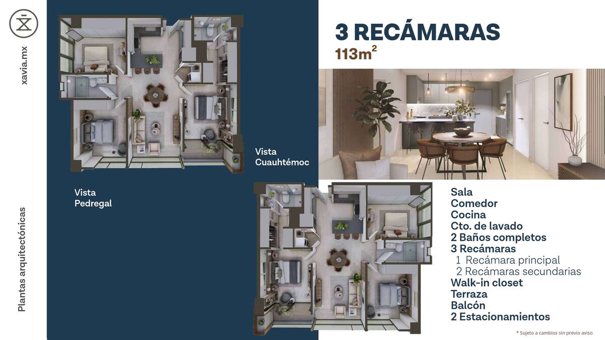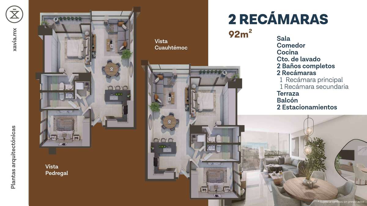 2 recámaras: $273,500 USD